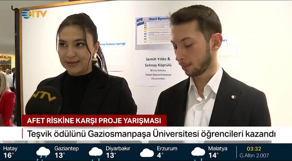 Milli Eğitim Bakanlığı (MEB) ve İçişleri Bakanlığı Afet ve Acil Durum Yönetimi Başkanlığı (AFAD) iş birliğinde Türk Japon Vakfı tarafından düzenlenen yarışmaya 5 ilden 86 başvuru yapıldı. Öğrencilerimizden Selinay KÖPRÜLÜ ve Semih YILDIZ, 86 proje arasından “Bilinç Kutusu” projesi ile yarı finale kaldı. Sonuçlanan yarışmada Üniversitemiz Acil Yardım ve Afet Yönetimi 4. sınıf öğrencileri “2. Afet Risk Azaltma Proje Yarışması”nda büyük başarı elde ederek teşvik ödülü aldı.