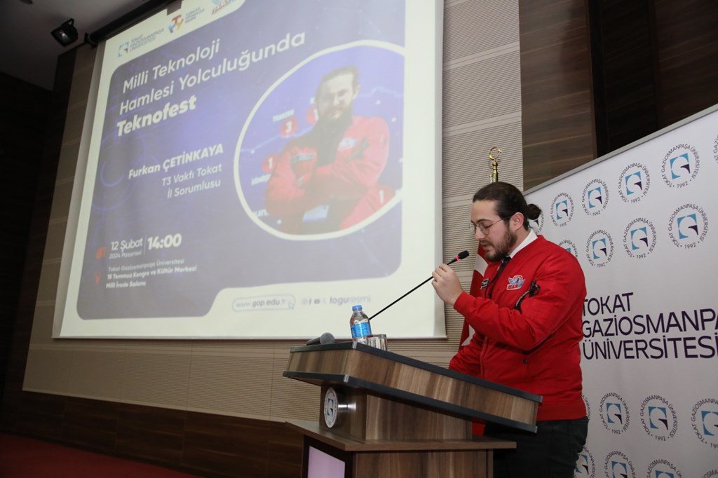Programda, T3 Vakfı Tokat İl Sorumlusu Furkan ÇETİNKAYA konuşmacı olarak yer aldı. ÇETİNKAYA, son başvuru tarihi 20 Şubat 2024 olan Teknofest yarışması ile ilgili detaylı bilgileri dinleyicilere aktardı. 2018 yılında başlayan festivalin yıllara göre başvuru sayılarına değinen ÇETİNKAYA, Tokat’tan yapılan başvurulara ve derece kazanan projelere değindi. Başvuruların nasıl yapılacağı ve hangi kategorilerde yarışmaların bulunduğunu açıklayan ÇETİNKAYA, dinleyicilerden gelen soruları da cevaplandırarak konuşmasını sonlandırdı.