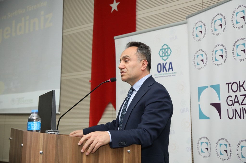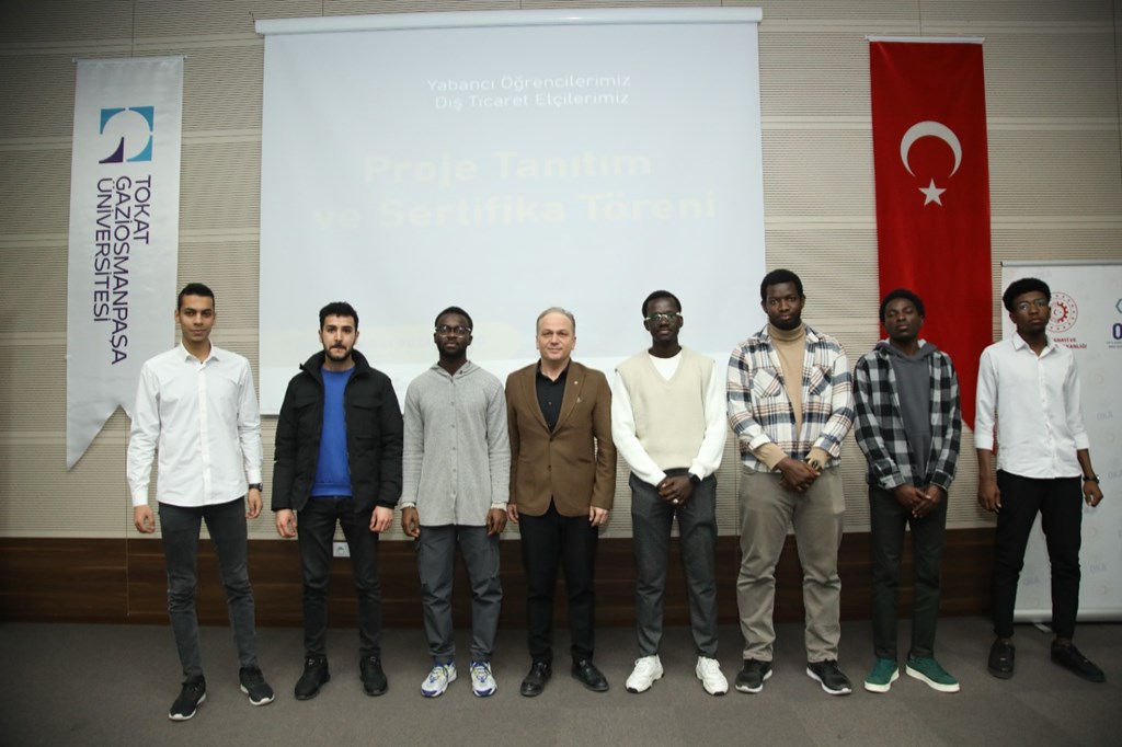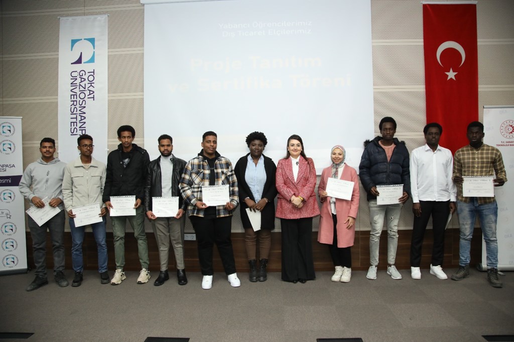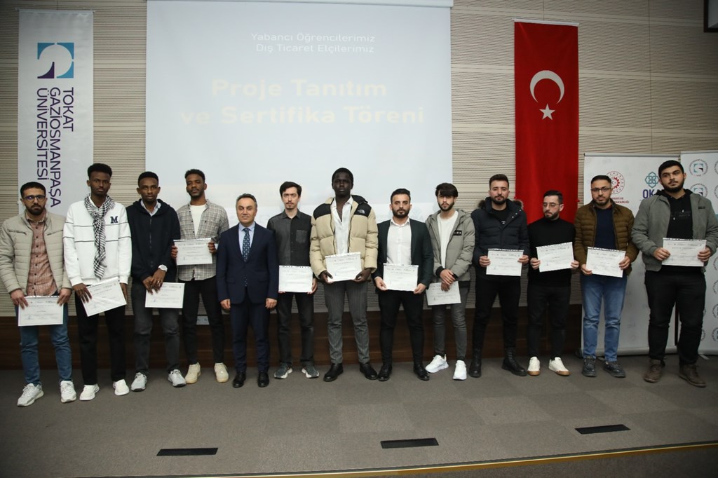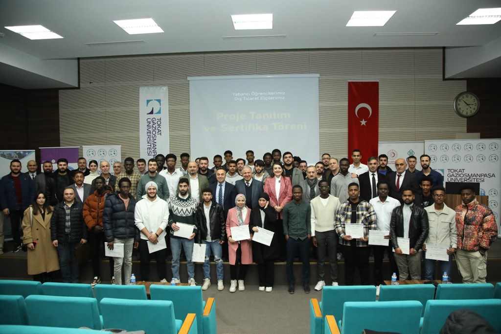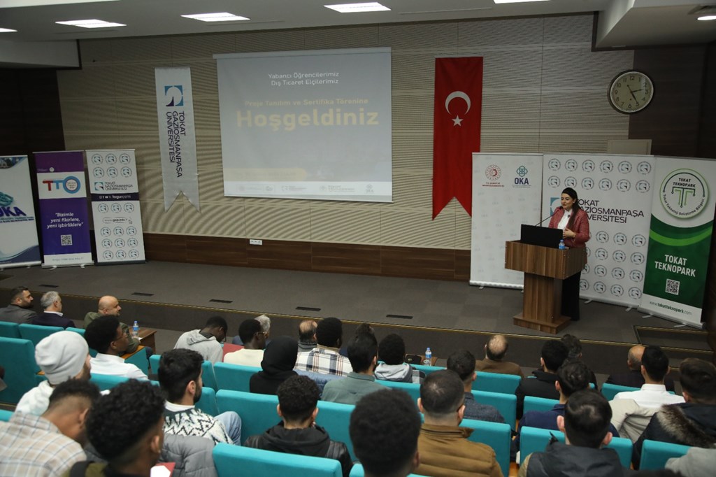 Üniversitemiz, Orta Karadeniz Kalkınma Ajansı ve Tokat Teknopark İş Birliği ile düzenlenen ‘Yabancı Öğrencilerimiz Dış Ticaret Elçileri’ proje tanıtım ve sertifika programı gerçekleştirildi. 15 Temmuz Kongre ve Kültür Merkezi, Turkuaz Salonda düzenlenen programa Rektörümüz Prof. Dr. Fatih YILMAZ, Orta Karadeniz Kalkınma Ajansı (OKA) Genel Sekreteri Mehlika DİCLE, Sanayi ve Teknoloji İl Müdürü Halil İbrahim YÜKSEL, Sanayi ve Ticaret Odası Başkanı Fatih GÖKDERE, firma temsilcileri ve öğrenciler katıldı.