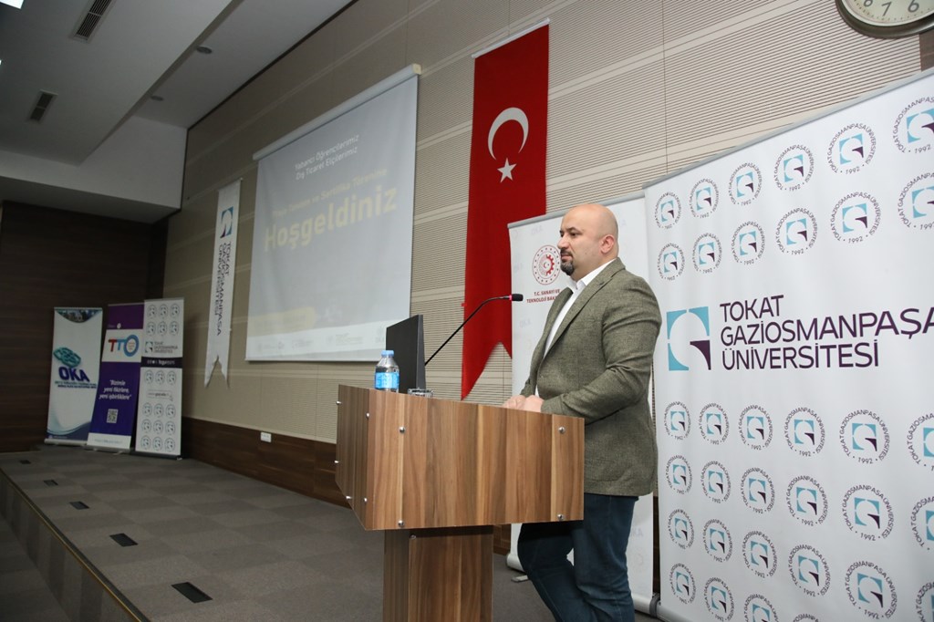 Tokat Teknopark Genel Müdürü Doç. Dr. Hakan POLATCI yapmış olduğu açılış konuşmasında Üniversite olarak Tokat sanayisine katkı sunmaktan duyduğu memnuniyeti ifade etti. POLATCI, ‘Yabancı Öğrencilerimiz Dış Ticaret Elçileri’ projesi ile ilgili ayrıntılı bilgileri dinleyicilere aktardı. Destek ve katkılarından dolayı Rektörümüze teşekkür ederek konuşmasını sonlandırdı.