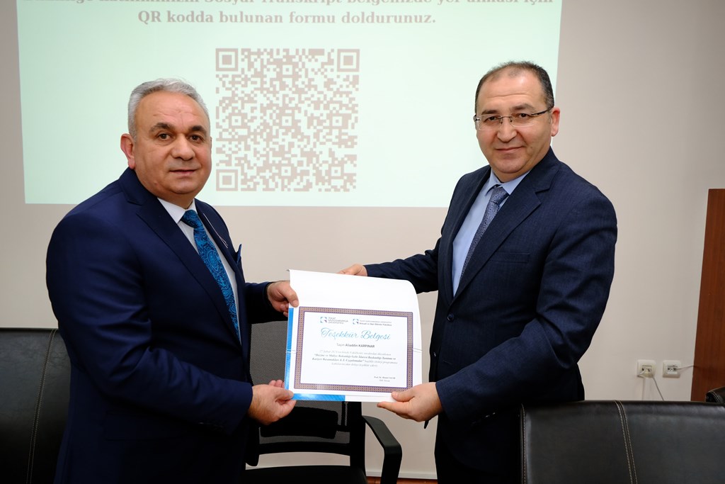 Açılış konuşmalarının akabinde “Hazine ve Maliye Bakanlığı gelir İdaresi Başkanlığı Tanıtım ve Kariyer Basamakları ve e-Uygulamalar” konusunda detaylı bilgiler dinleyicilere aktarıldı. Program sonunda konuşmacılara teşekkür belgesi takdimi yapıldı.