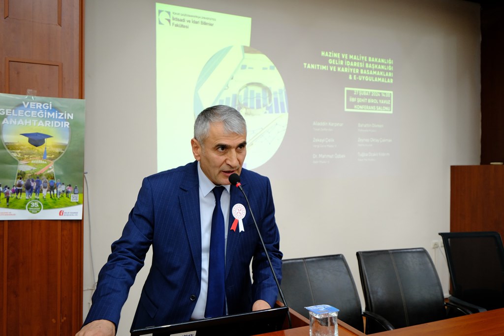 Üniversitemiz İktisadi ve İdari Bilimler Fakültesi tarafından “Hazine ve Maliye Bakanlığı gelir İdaresi Başkanlığı Tanıtım ve Kariyer Basamakları ve e-Uygulamalar” programı gerçekleştirildi. Şehit Birol Yavuz Konferans Salonunda düzenlenen programa Rektör Yardımcımız Prof. Dr. Rasim KOÇYİĞİT, Rektör Danışmanımız Doç. Dr. Yusuf TEMÜR, Tokat İl Defterdarı Aliaddin KARPINAR, Dekanlarımız, Genel Sekreterimiz, akademik ve idari personelimiz ile öğrencilerimiz katıldı.