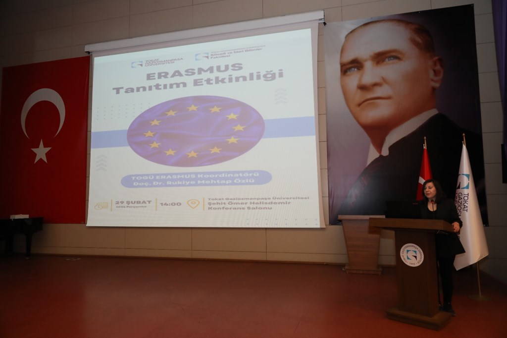 Akabinde Erasmus Koordinatörü Doç. Dr. Rukiye Mehtap ÖZLÜ tarafından değişim programı ile ilgili detaylı bilgiler öğrencilere aktarıldı. ÖZLÜ, ERASMUS programının ne olduğu, hangi ülkelerle değişim yapıldığı, merak edilenler ve süreç ile ilgili bilgileri dinleyicilerle paylaştı.