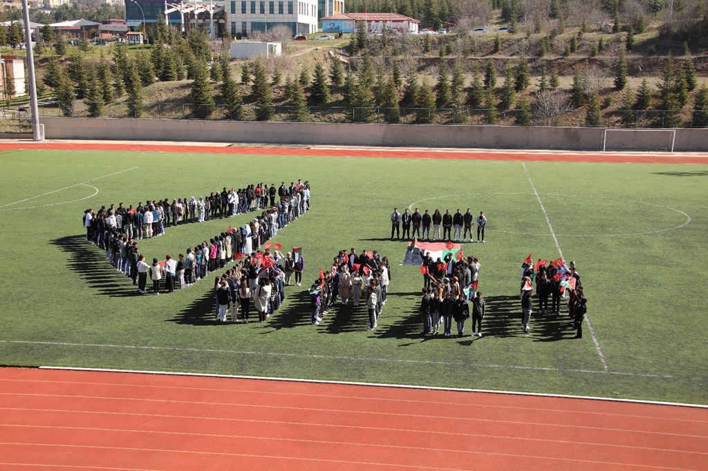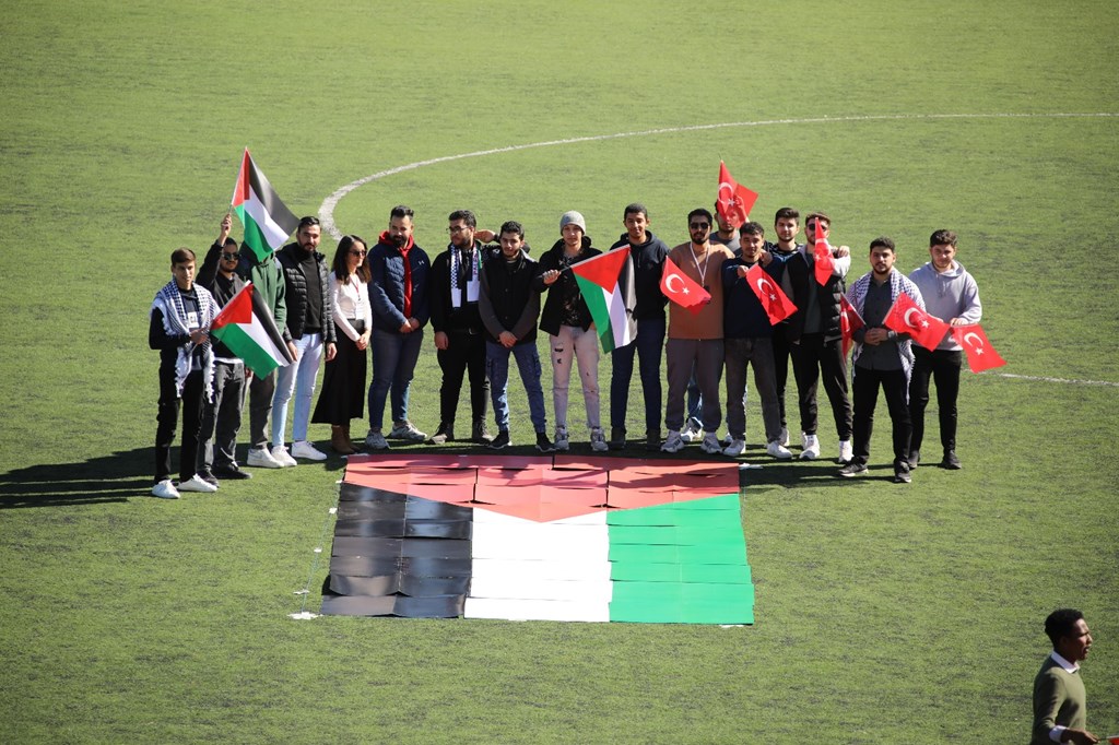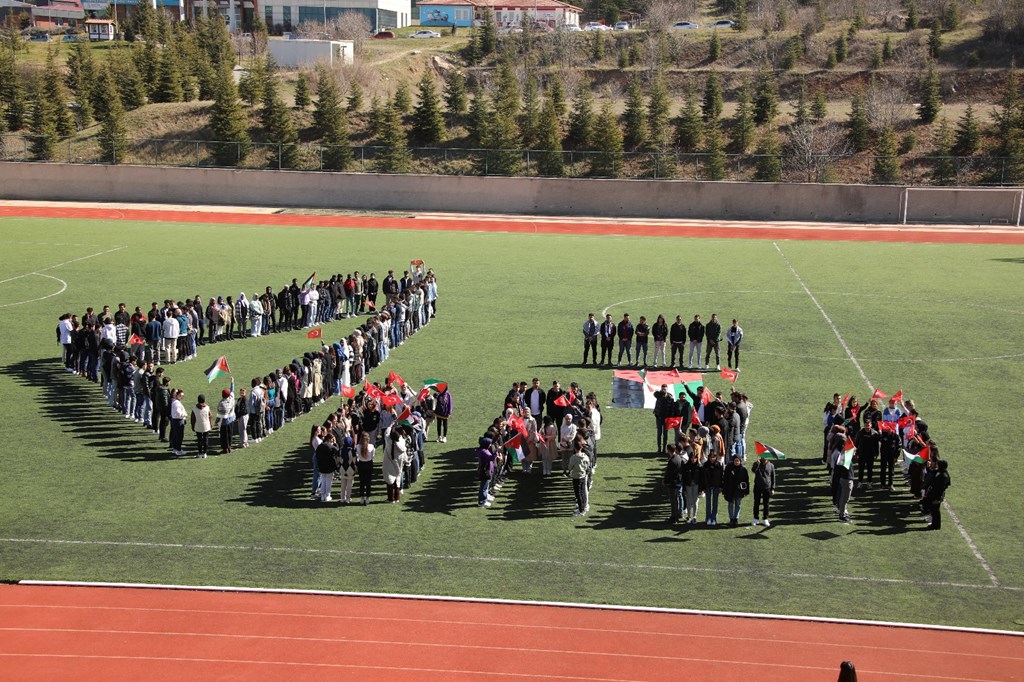 EĞİTİM 1 Mart 20246 Mayıs 2025 Kurumsal İletişim Koordinatörlüğü 17 Üniversitemiz Genç Ofis tarafından Gazze ile dayanışma için koreografi çalışması gerçekleştirdi. Yaklaşık 250 kişilik öğrencimiz TOGÜ stadyumunda bir araya gelerek Filistin haritası şeklini canlandırdı ve İngilizce olarak GAZA yazdı. 2024 Read more articles Önceki HaberTarımsal Ürün Mevzuatında Yeni Gelişmeler ve Tokat İli Tarımının Mevcut DurumuSonraki HaberÜniversitemizden Şiddet Farkındalık Eğitimi