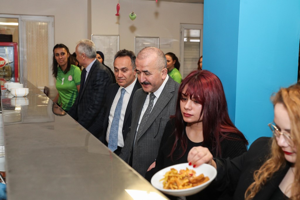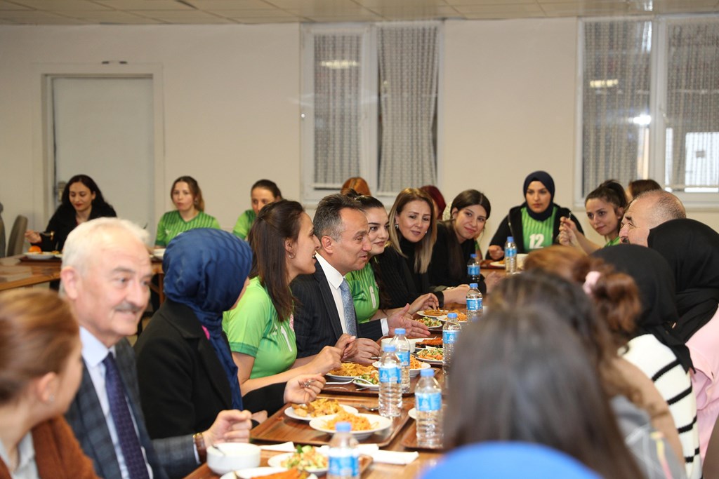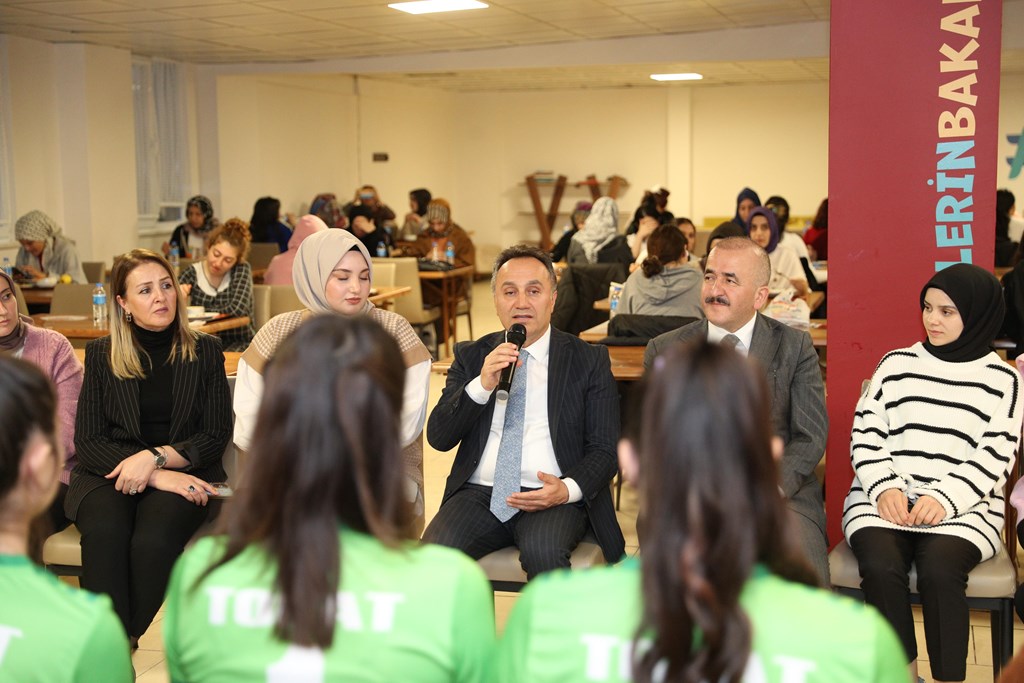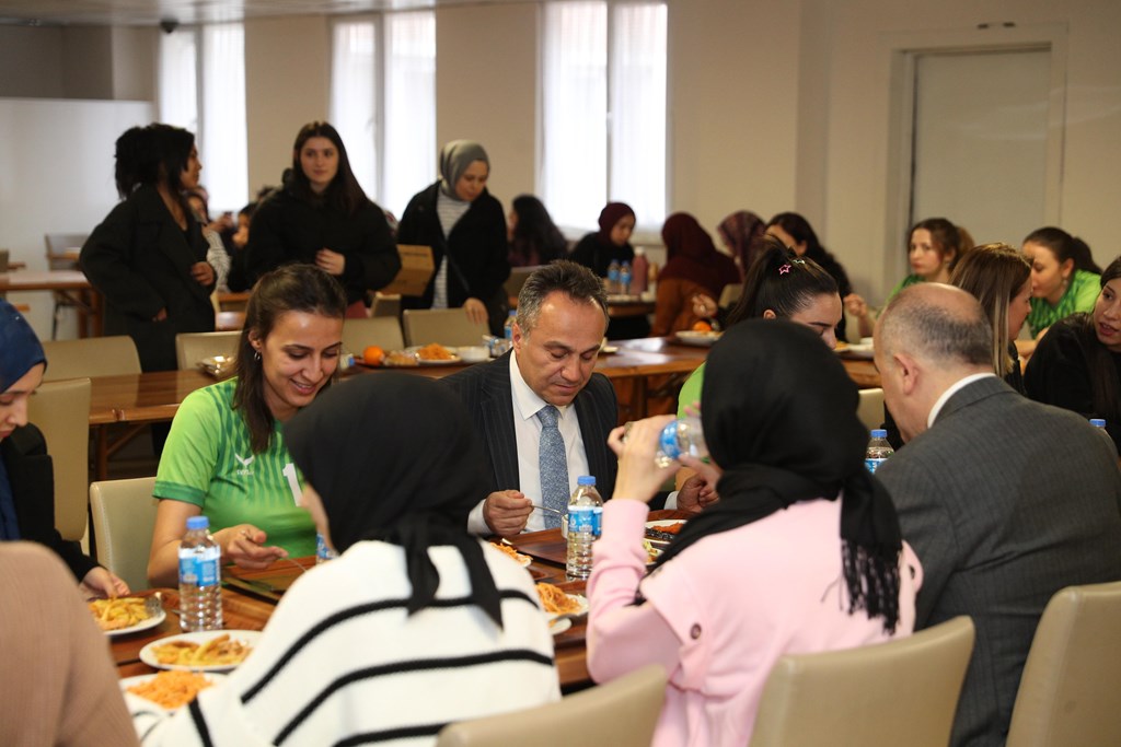 Tokat Valisi Numan HATİPOĞLU, Rektörümüz Prof. Dr. Fatih YILMAZ ve Tokat Gençlik ve Spor İl Müdürü Haşim EĞER Gençlik ve Spor Bakanlığı’na bağlı Gülsüm Ana Kız Öğrenci Yurdu'nu ziyaret ederek, akşam yemeğinde öğrencilerle bir araya geldi. Vali HATİPOĞLU, Rektörümüz ve Gençlik ve Spor İl Müdürü EĞER öğrencilerle birlikte sıraya girerek tabldottan yemeklerini aldılar. Öğrencilerle birlikte hem yemek yiyen hem de sohbet eden protokol sonrasında Gençlik ve Spor Bakanlığı’na bağlı yurtlar arası Voleybol müsabakalarında Tokat Şampiyonu olan Gülsüm Ana Kız Yurdu Voleybol Takımı'na ödüllerini takdim ettiler.