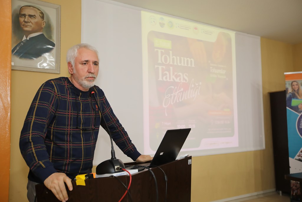 Ziraat Fakültesi öğretim üyesi Prof. Dr. Naif GEBOLOĞLU yapmış olduğu konuşmada tohumların elde edilmesi ve muhafazasıyla ilgili bilgiler aktardı. Toplanan tohumların incelendiğini ve içlerinden seçimler yapıldığını belirten GEBOLOĞLU, yerel domates çeşidinin ve Tokat biberi tohumunun ellerinde bulunduğunu belirtti. Üretimi yapılan tohumların en kısa sürede üreticilere dağıtılacağını söyledi.