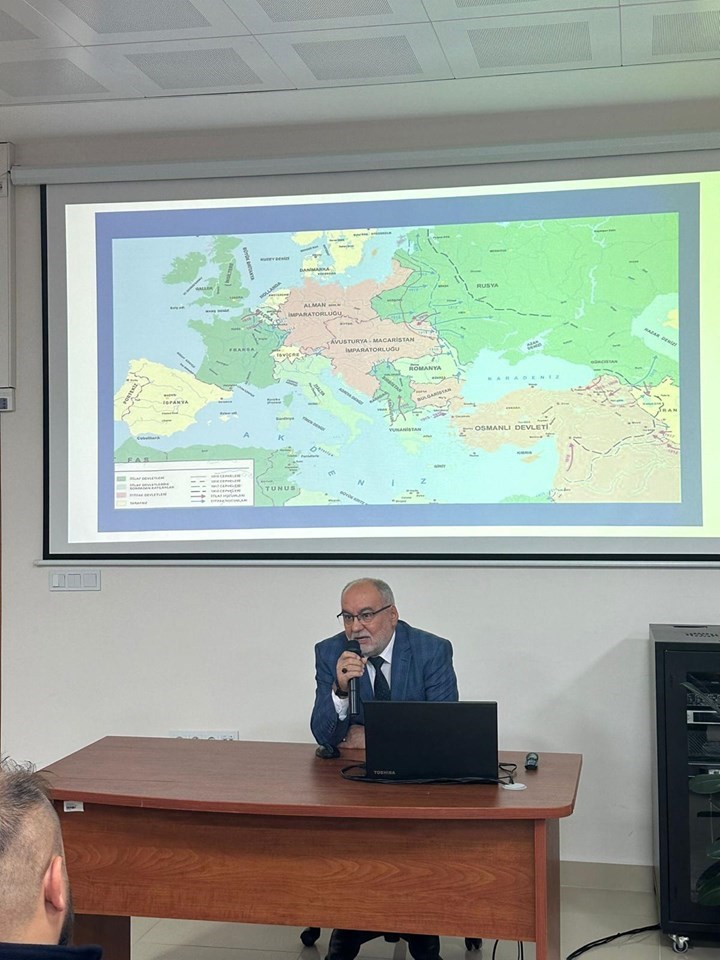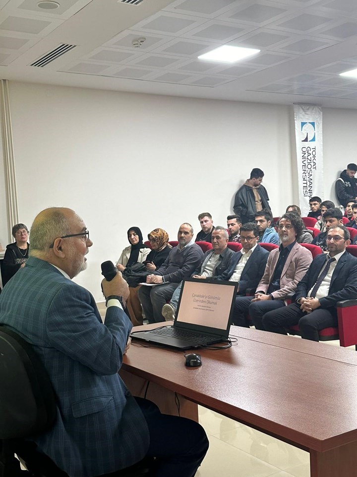 Niksar Meslek Yüksekokulumuz ve Niksar Uygulamalı Bilimler Fakültesi tarafından düzenlenen “Çanakkale’yi Günümüz Üzerinden Okumak” adlı konferansa Üniversitemiz Genel Sekreteri, Siyaset Bilimi ve Uluslararası İlişkiler Bölümü öğretim üyesi Prof. Dr. Muhittin DEMİRAY konuşmacı olarak katıldı. Konferansın açılış konuşmasında Doç. Dr. Fatih SOBACI, programın düzenlenmesindeki amaca vurgu yaparak, “destanı yazan kahramanlarımız halen yaşıyorlar, bizlerin yaşamadan ölmememiz için Çanakkale ruhunu ve ‘size ölmeyi emrediyorum’ diyen büyük iradeyi anlamamız çok önemli” derken; Prof. Dr. Ahmet GÜVEN, “biraz sonra şehit olacağını bilmesine rağmen hiç düşünmeden vatan müdafaasına koşan tüm şehitlerimizi rahmet ve minnetle anıyoruz” dedi. Konferans konuşmacısı Prof. Dr. Muhittin DEMİRAY ise konuşmasında, bu gün Filistin ve Suriye başta olmak üzere bir çok yerde yaşanan olayları doğru anlamanın yolunun Çanakkale’yi doğru okumaktan, anlamaktan geçtiğini belirterek, Türkiye’nin gönül coğrafyasının genişliğine vurgu yaptı. DEMİRAY, ülkemizin bir kilim gibi farklı güzellikleri bir arada barındırdığını, Çanakkale’yi yaşatan ruhun bu zenginlikten beslendiğini ve bu zenginliklerin ebediyyen yaşaması için gençlerimizin bunları bilmesi gerektiğini ifade etti. Program, teşekkür belgelerinin takdimi ile sona erdi.