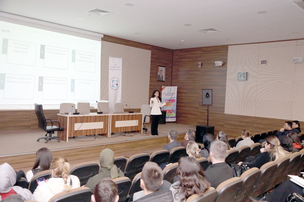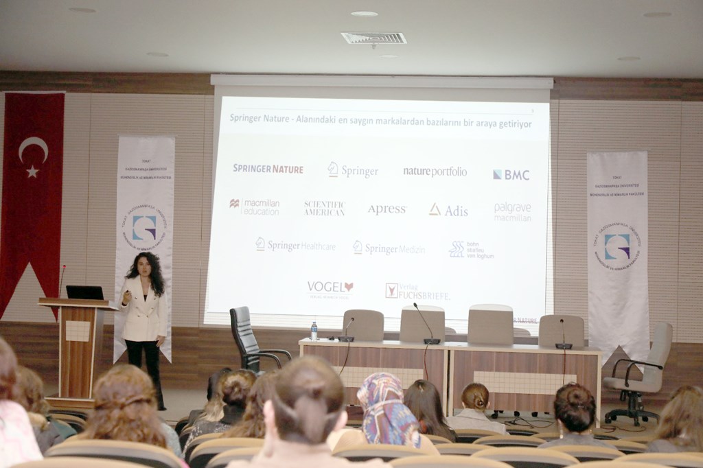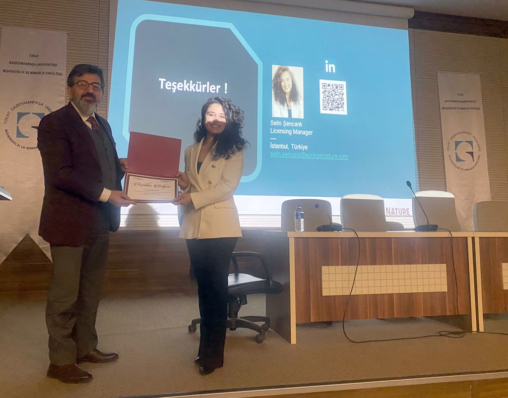 Seminere Springer Nature Lisanslama Müdürü Selin ŞENCANLI konuşmacı olarak katıldı. ŞENCANLI seminerinde, etkili yazım teknikleri, makale hazırlama, dergi seçimi, başvuru yapma, Springer Nature Tubitak açık erişim anlaşması detayları ile ilgili ayrıntılı bilgileri dinleyicilerle paylaştı. Seminer, Selin ŞENCANLI’ya teşekkür belgesi takdimi ile son buldu.