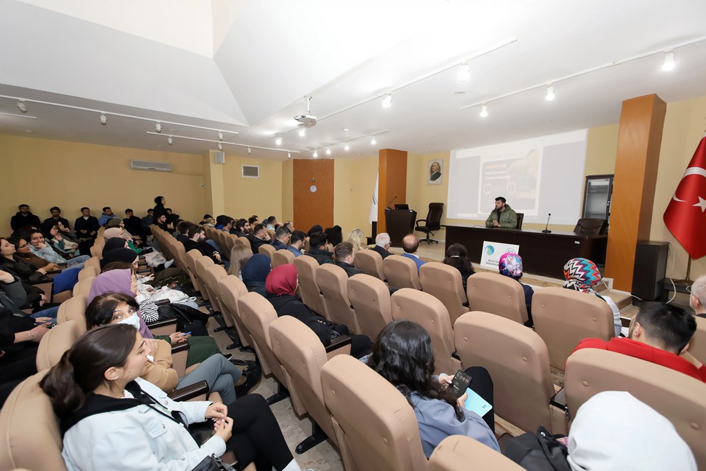 Kariyer Söyleşisi öncesinde Kariyer Uygulama ve Araştırma Merkezi Kariyer Danışmanı Öğr. Gör. Yunus Eren IŞILDAK, Kariyer Merkezi faaliyetleri hakkında bilgi verdi.