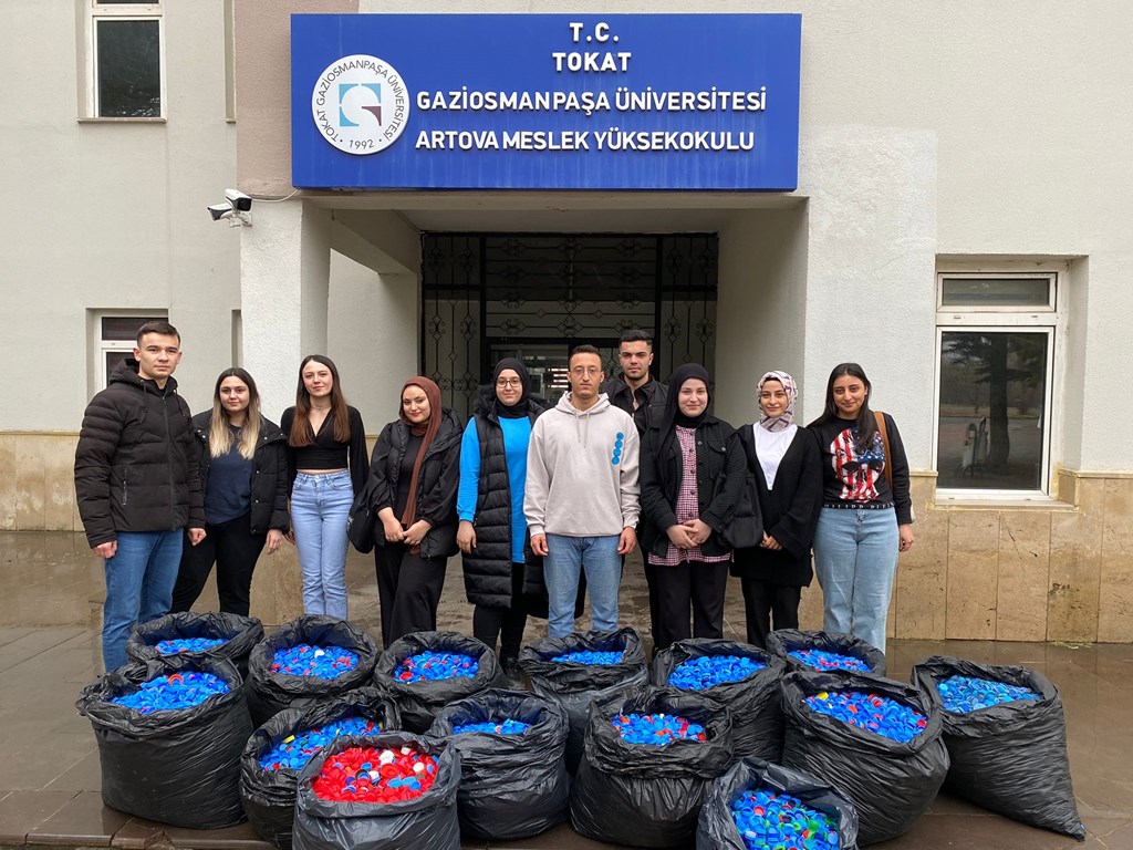 Tokat Gaziosmanpaşa Üniversitesi (TOGÜ) Artova Meslek Yüksekokulu İletişim Kulübü üyesi İbrahim Şenyerli ve Hasan Can Kazi'nin, sosyal sorumluluk bilinciyle çevre temizliği bilinci oluşturmak ve engellilere katkıda bulunmak amacıyla başlattıkları mavi kapak toplama kampanyası kapsamında 180 bin adet plastik kapak toplandı.