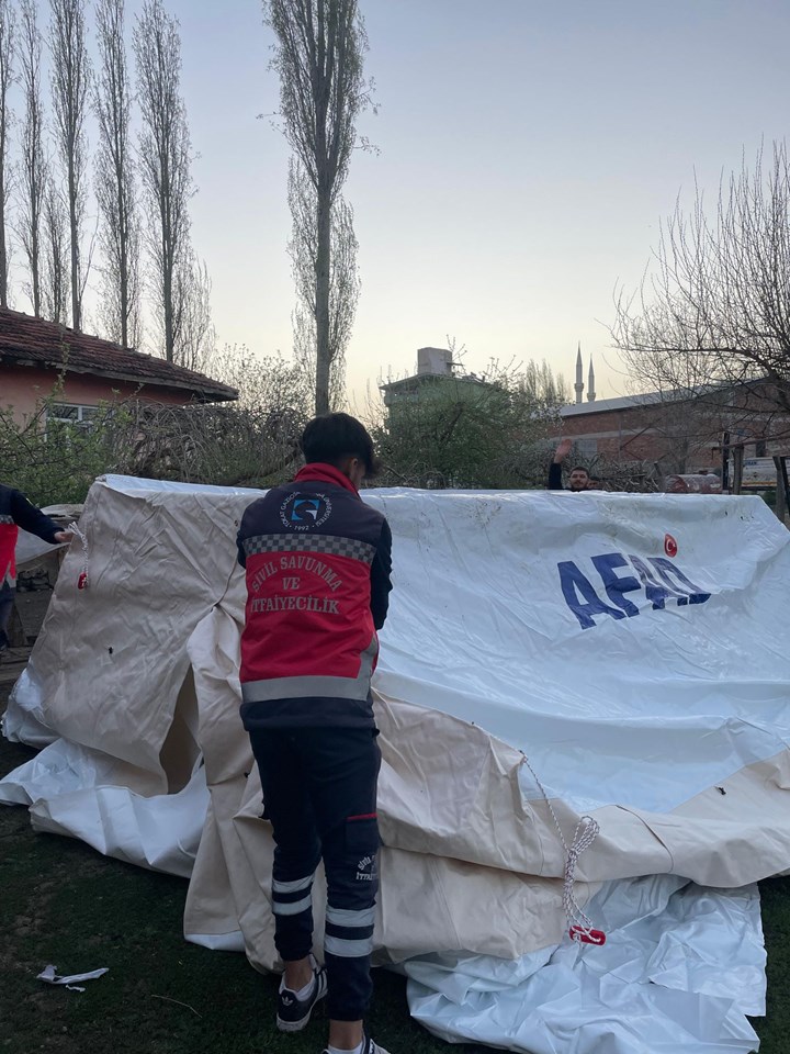 Tokat Sulusaray merkezli olarak yaşanan 5.6 büyüklüğündeki deprem sonrası Üniversitemiz Niksar Meslek Yüksekokulu Sivil Savunma ve İtfaiyecilik Programı öğrencileri deprem bölgesindeki vatandaşlarımızın yanında yer alarak çalışmalara destek oldu. Öğr. Gör. Mustafa YILDIZ’ın eşliğinde çalışmalara katılan 20 öğrencimiz dağıtılan çadırların kurulumunu gerçekleştirdi.
