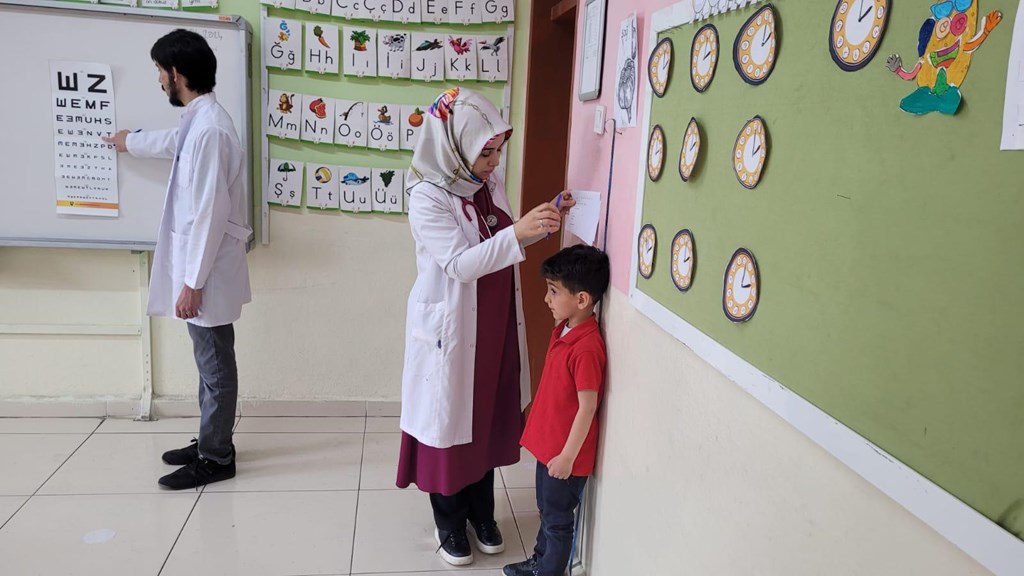TOPLUMSAL KATKI 24 Nisan 20246 Mayıs 2025 Kurumsal İletişim Koordinatörlüğü 24 Üniversitemiz Tıp Fakültesi ile Tokat İl Milli Eğitim Müdürlüğü iş birliği ile çocuklara yönelik sağlık taraması gerçekleştirildi. Ali Osman Tepe Kardeşler İlkokulunda yapılan sağlık taramasında çocukların göz, boy ve kilo kontrolleri yapıldı. 2024 Read more articles Önceki HaberÖğrencilerimizden Depremzede Vatandaşlarımıza DestekSonraki Haber“Nesilden Nesil’e Engelsiz Gönül Bağı Projesi” Dedeler ve Torunları Bir Araya Getirmek İçin Engelleri Kaldırıyor