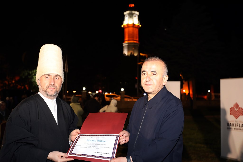 Tokat Valiliği, Tokat Belediyesi, Üniversitemiz, Tokat Vakıflar Bölge Müdürlüğü ve Sivas Mevlana Kültürü ve Tasavvuf Derneği tarafından ortaklaşa düzenlenen “Sema Mukabelesi (Kûçek Mustafa Dede’nin Bayatî Âyin-i Şerîfi)” programı gerçekleştirildi. Tokat Mevlevihanesi bahçesinde gerçekleştirilen etkinliği Tokat Valisi Numan HATİPOĞLU, Tokat Belediye Başkanı Mehmet Kemal YAZICIOĞLU, Rektörümüz Prof. Dr. Fatih YILMAZ, Tokat İl Özel İdare Genel Sekreteri Ahmet KAYHAN, Tokat Vakıflar Bölge Müdürü Sebahattin ERDOĞAN, Tokat İl Müftüsü Esat YAPICI, İl Milli Eğitim Müdürü Hüseyin KIR, Üniversitemiz Devlet Konservatuvarı Müdürü Prof. Dr. Serkan UMUZDAŞ, kurum amirleri ve vatandaşlar katıldı. Sema Mukabelesi öncesinde Sivas Mevlana Kültürü ve Tasavvuf Derneği Heyet Başkanı Celaleddin SUSAMIŞ Mukabele hakkında bilgiler verdi. Sonrasında Üniversitemiz İslami İlimler Fakültesi ve Devlet Konservatuvarı öğretim elemanları eşliğinde Sivas Mevlana Kültürü ve Tasavvuf Derneği tarafından Kûçek Mustafa Dede’nin Bayatî Âyin-i Şerîfi gerçekleştirildi. Etkinlik sonrasında Tokat Valisi Numan HATİPOĞLU, Tokat Belediye Başkanı Mehmet Kemal YAZICIOĞLU teşekkür belgesi takdiminde bulundular.