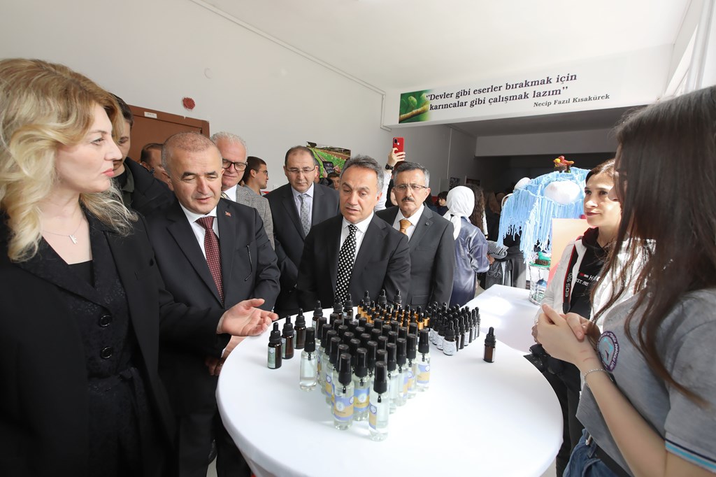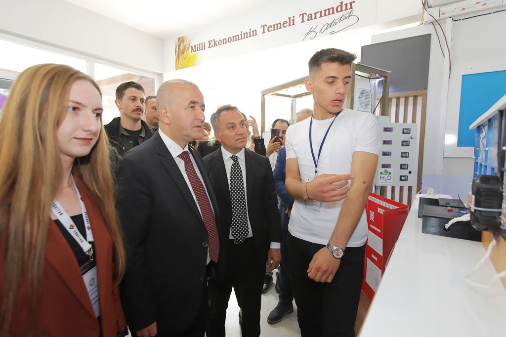 Konuşmaların ardından Üniversitemiz Mesleki ve Teknik Anadolu Lisesi öğrencileri tarafından açılan fuar gezilerek standlardan bilgi alındı.