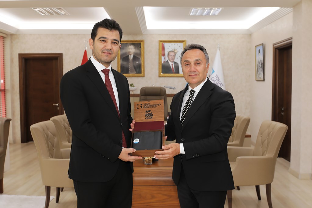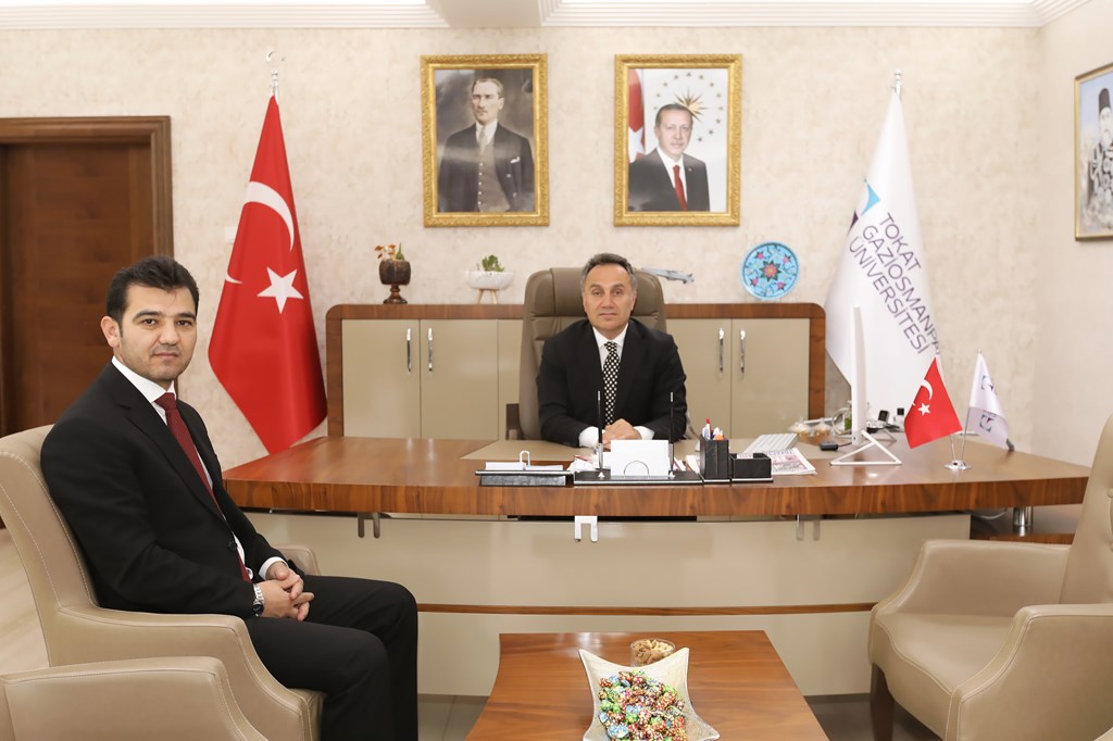 İçişleri Bakanlığı tarafından Tokat İl Özel İdaresi Genel Sekreteri olarak atanan Ahmet KAYHAN Rektörümüz Prof. Dr. Fatih YILMAZ’ı ziyaret etti. Rektörlük makamında gerçekleşen ziyarette Üniversitemiz ile İl Özel İdaresi arasında yapılacak olan çalışmalar hakkında fikir alış verişinde bulunuldu. Rektörümüz Prof. Dr. Fatih YILMAZ nazik ziyaretlerinden dolayı Tokat İl Özel İdaresi Genel Sekreteri Ahmet KAYHAN’a teşekkür ederek yeni görevinde başarılar diledi. Ziyaret sonrasında Rektörümüz Genel Sekreter KAYHAN’a hediye takdiminde bulundu.