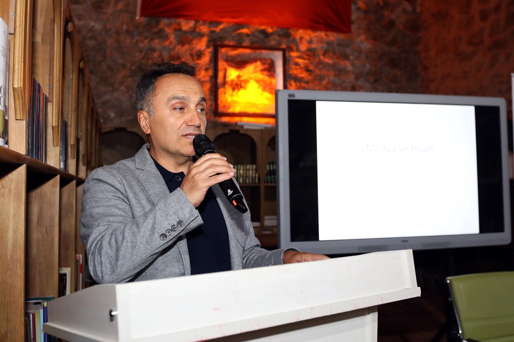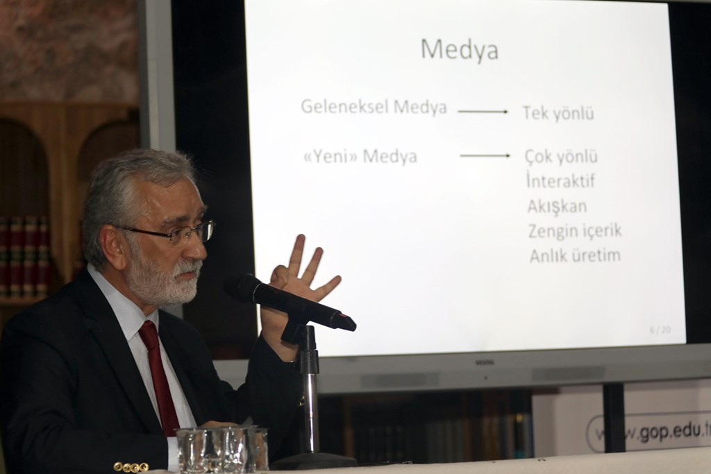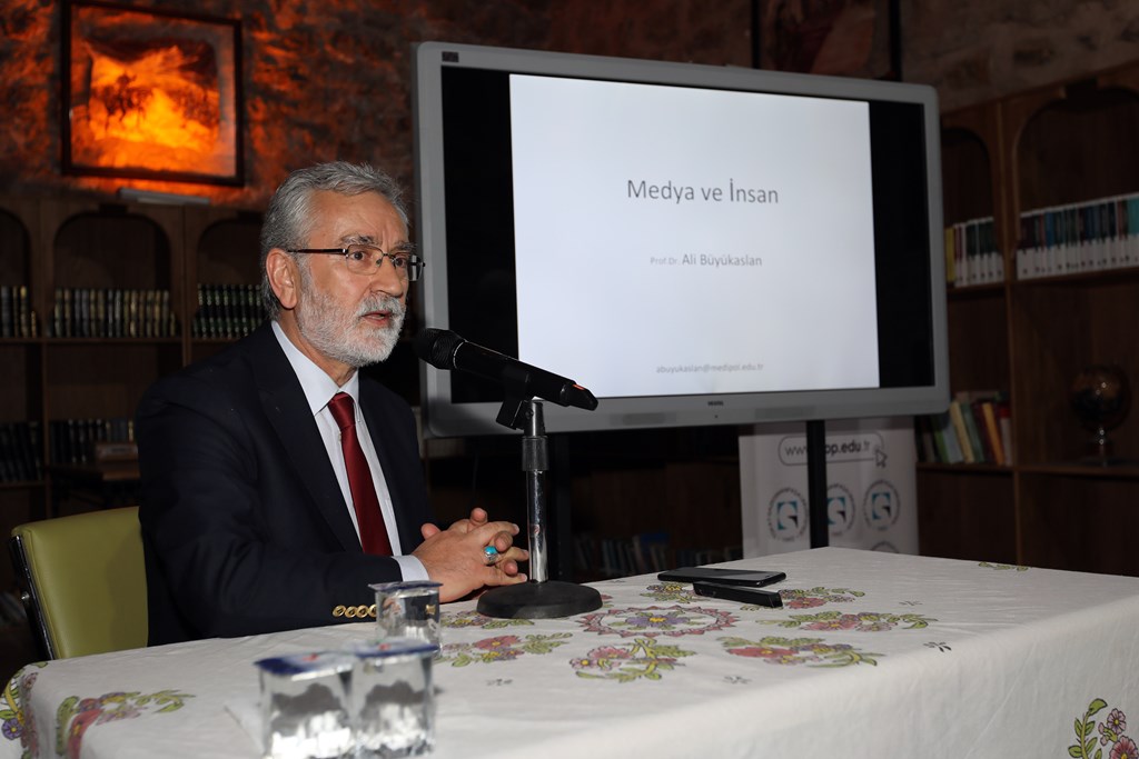 İstanbul Medipol Üniversitesi İletişim Fakültesi Öğretim Üyesi Prof. Dr. Ali BÜYÜKASLAN vermiş olduğu konferansta yeni medya ile hayatımızda nelerin değiştiğini, yapılan haberlerin önceki haberlere göre daha çok fazla kitleye hızlı bir şekilde iletildiğini, bunun iyi tarafları olduğu kadar kötü taraflarınında olduğunu ifade etti.
