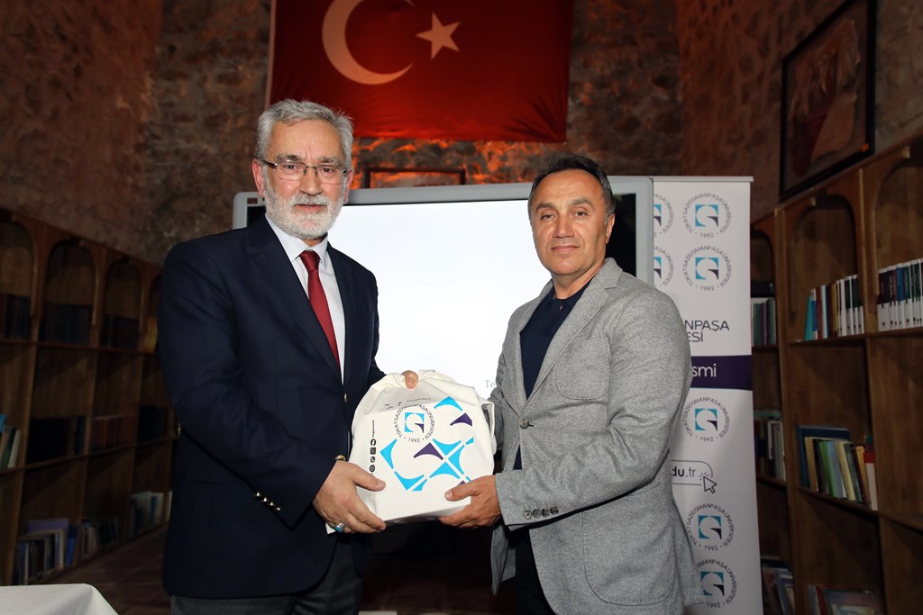 Konferans sonrası Rektörümüz Prof. Dr. Fatih YILMAZ, Prof. Dr. Ali BÜYÜKASLAN’a hediye takdiminde bulundu.