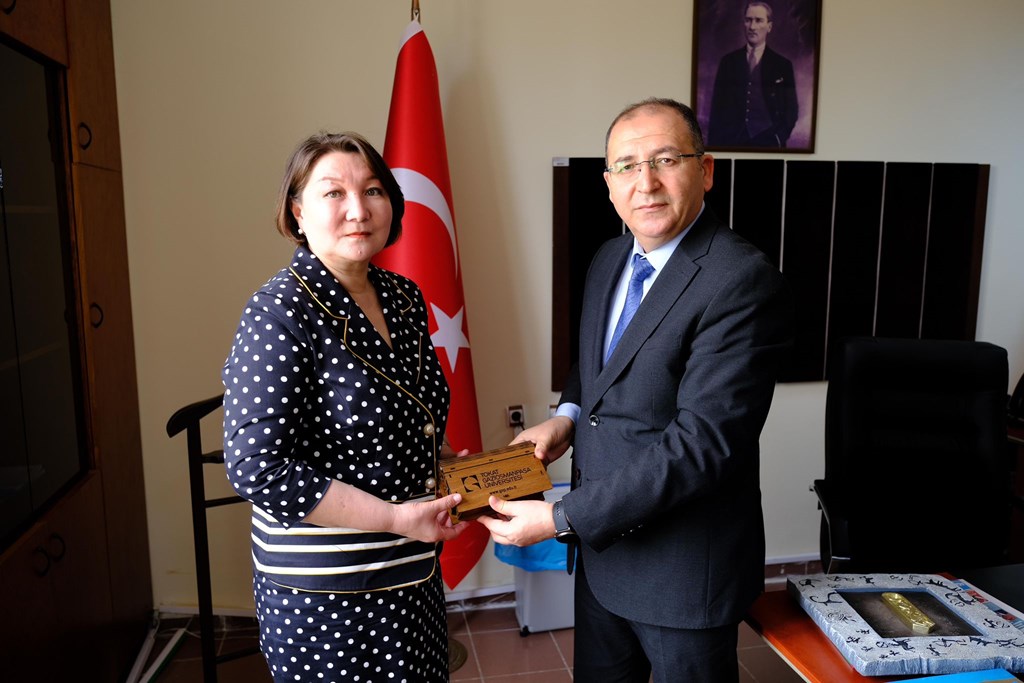 Konuklarımız, Rektör Yardımcımız Prof. Dr. Rasim KOÇYİĞİT’i de ziyaret ettiler. Karşılıklı fikir alışverişinin yapıldığı ziyarette Rektör Yardımcımız konuklarımıza nazik ziyaretlerinden dolayı teşekkürlerini iletti. Kazakistan Avrasya Beşeri Bilimler Üniversitesi Rektör Yardımcısı Prof. Dr. Ahmetov Kadyr, her iki üniversitenin özellikle eğitim alanında daha çok ikili ilişkilerde bulunacaklarını ifade etti. Ayrıca bu çalışmaların Türkiye ve Kazakistan ilişkilerine katkı sağlayacağını ifade etti.