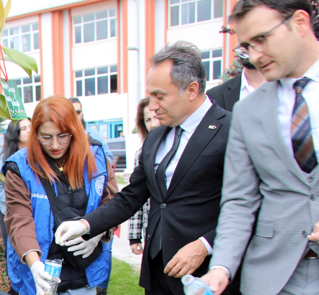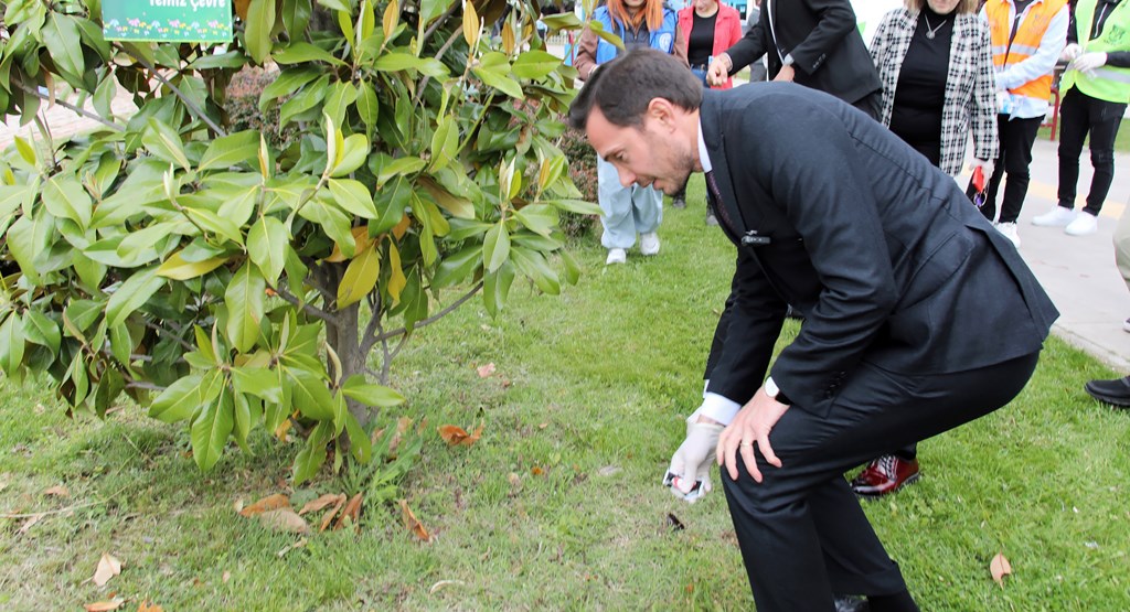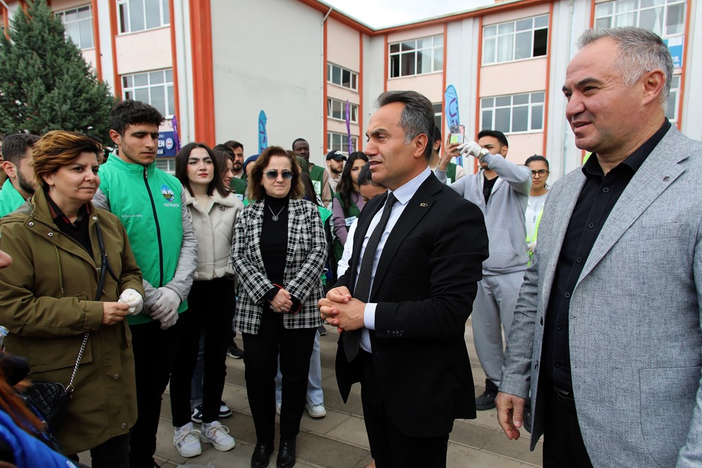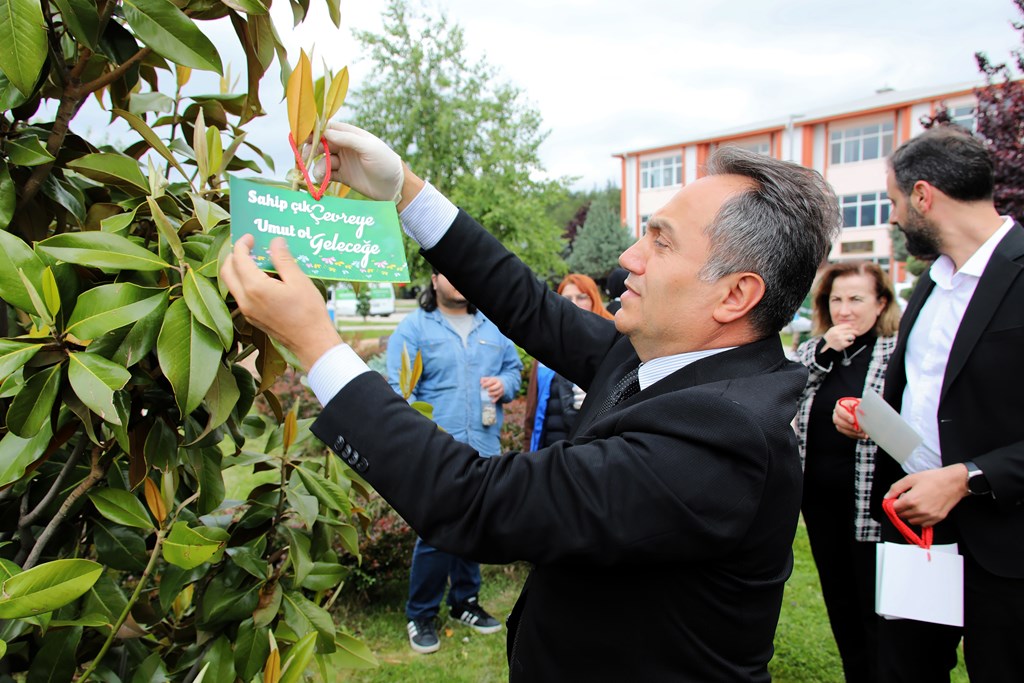 Akabinde Belediye Başkanımız ve Rektörümüz öğrencilerimiz ile birlikte çevre temizliği yaptılar. Ağaçlara çevre mesajları astılar.