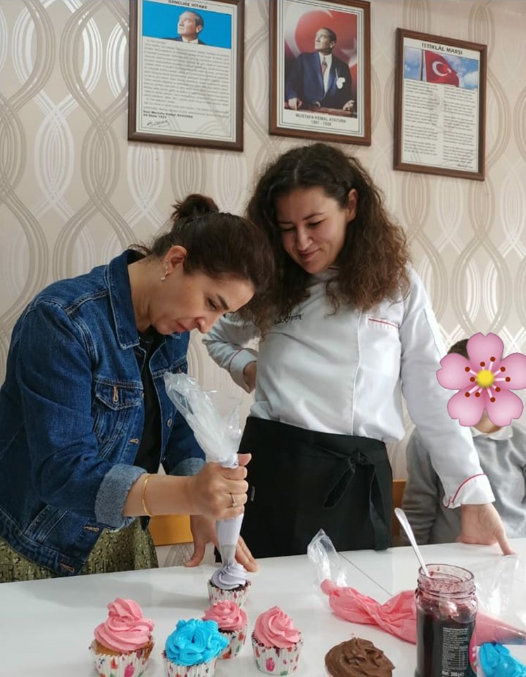 Üniversitemiz Güzel Sanatlar Fakültesi, Gastronomi ve Mutfak Sanatları Anabilim Dalı tarafından Dr. Öğr. Üyesi Ayla AYDIN eşliğinde 'Cupcake Workshop (Atölyesi)’ etkinliği gerçekleştirildi. 10-16 Mayıs Dünya Engelliler haftası kapsamında gerçekleştirilen etkinlik Karşıyaka İlkokulu mutfağında otizmli öğrencilerimizin katılımıyla düzenlendi. Etkinliğe Miraç Ensar Şener, Hatun Coşkun, Şeyda Kaçmaz ve Sema Gün öğretmenler sınıfları ile katılım gösterdiler. Öğrencilerimiz cupcake yapmayı ve süslemeyi öğrendiler.