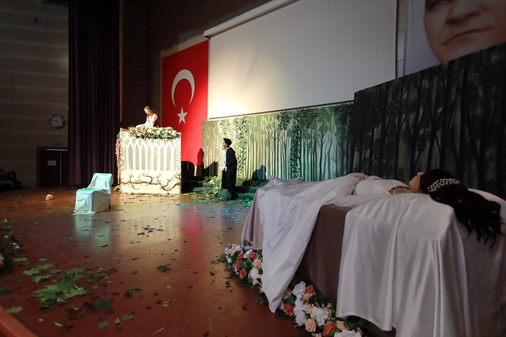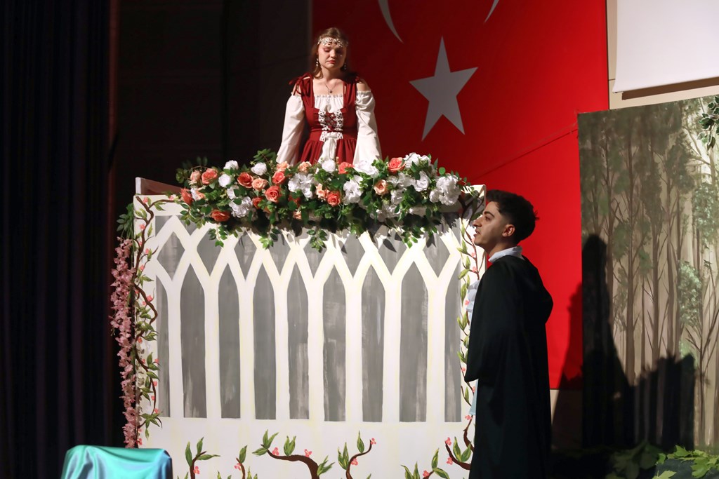 Dr. Öğr. Üyesi Nihal Demirkol AZAK ve Arş. Gör. Tansel GÖKSU tarafından hazırlanan “Shakespeare Sahnemizde” oyununda Üniversitemiz İngiliz Dili ve Edebiyatı öğrencileri oyuncu olarak görev aldı. Oyunda Romeo ve Juliet, Macbeth, Hamlet ve Bir Yaz Gecesi Rüyası oyunlarından seçkiler izleyicinin beğenisine sunuldu. Oyun sonunda hazırlayan hocalara ve oyunculara teşekkür belgesi takdimi yapıldı.