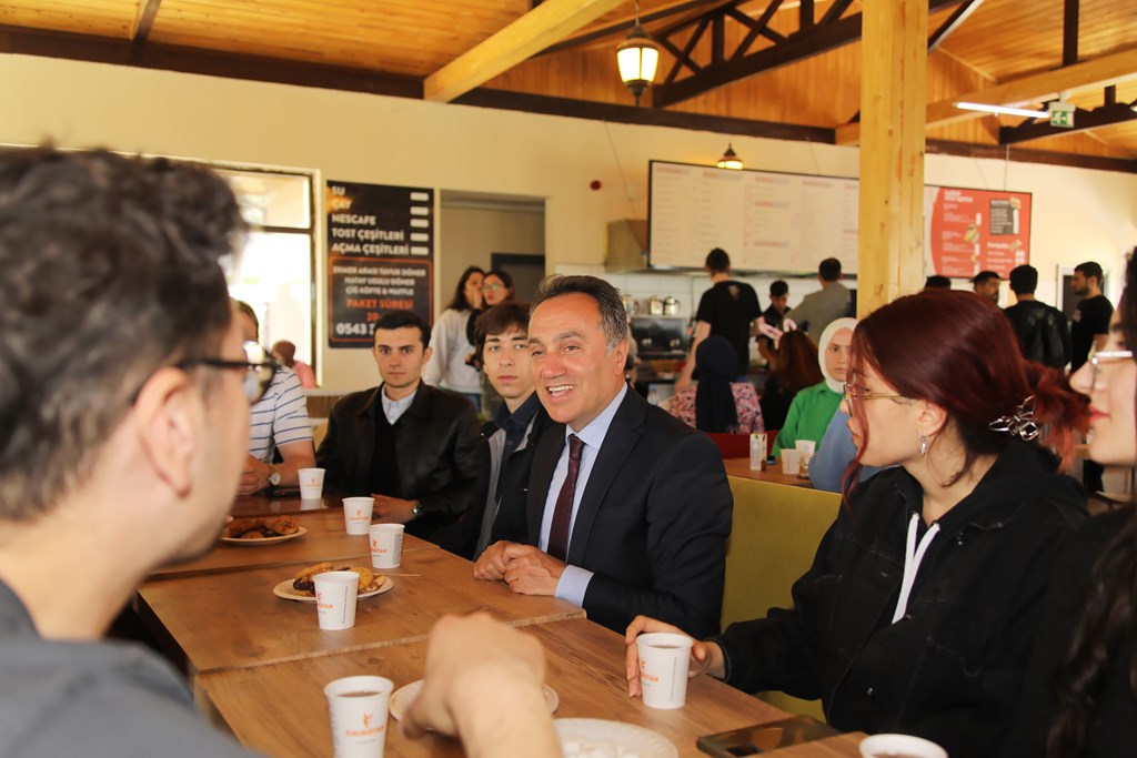 Daha önce Fen Edebiyat Fakültesi ve Sağlık Bilimleri Fakültesi kantinini ziyaret eden Rektörümüz Prof. Dr. Fatih YILMAZ, kantin sohbetleri kapsamında öğrencilerimizle buluşmaya devam edecek.