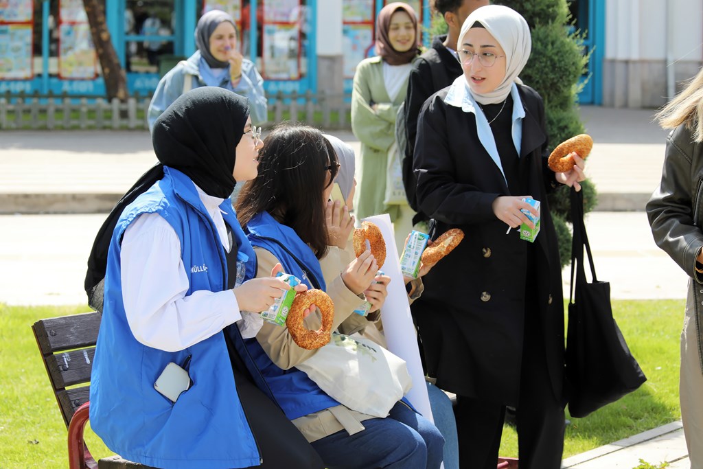 Taşlıçiftlik Kampüsü merkezi yemekhane önünde toplanan öğrencilerimiz, yemyeşil doğa içerisindeki kampüsümüzde yürüyüş gerçekleştirdiler. Yürüyüş sonunda Rektörümüz Prof. Dr. Fatih YILMAZ, yürüyüşe katılan öğrencilerimize simit ve süt ikramında bulundu.