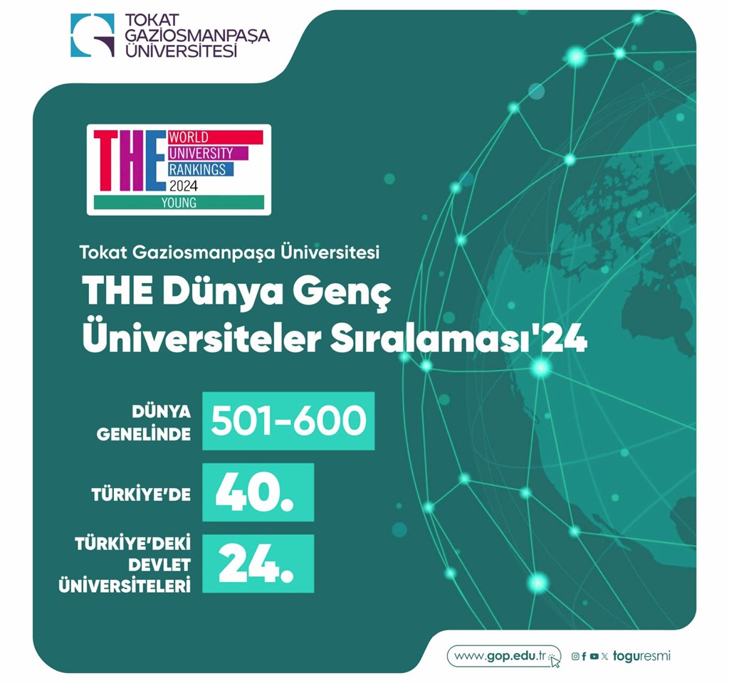 Dünyanın en iyi üniversitelerini listeleyen THE, üniversiteleri, öğretim, araştırma, bilgi transferi ve uluslararası görünüm misyonları açısından değerlendiriyor. 2024 yılında da 79 ülkeden 673 üniversite değerlendirmeye alındı. Tokat Gaziosmanpaşa Üniversitesi, Türkiye’deki vakıf üniversitelerinin de dahil olduğu sıralamada 40’ıncı olurken, sadece devlet üniversitelerinin yer aldığı sıralamada 24’üncü sıraya yerleşti.