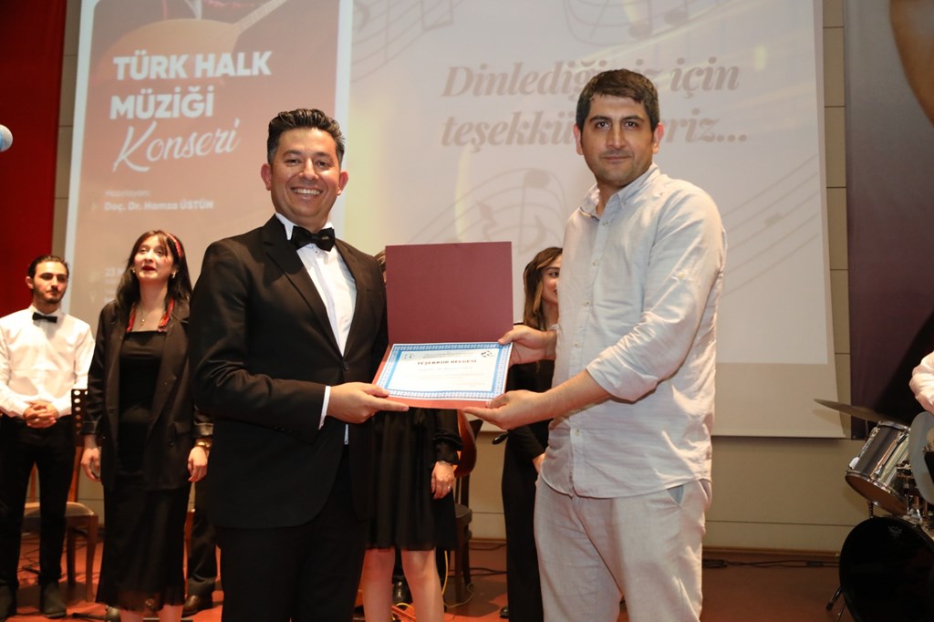 Üniversitemiz Eğitim Fakültesi Müzik Eğitimi Anabilim Dalı tarafından Türk Halk Müziği konseri gerçekleştirildi. Şehit Ömer Halisdemir Konferans Salonunda düzenlenen konsere akademik ve idari personelimiz ile öğrencilerimiz katıldı. Doç. Dr. Hamza ÜSTÜN tarafından hazırlanan konserde öğretim üyelerimiz ve öğrenciler görev aldı. Konser, teşekkür belgesi takdimi ile son buldu.