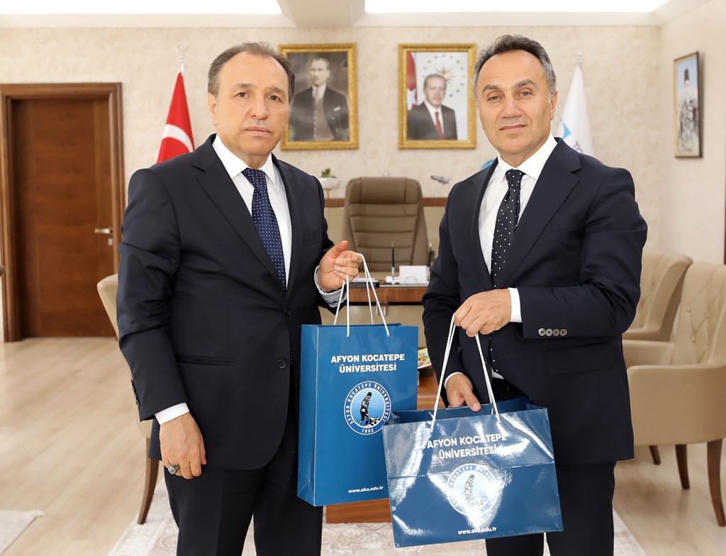 Afyon Kocatepe Üniversitesi Rektörü Prof. Dr. Mehmet KARAKAŞ ve Türkiye Cumhuriyet Merkez Bankası Banka Meclisi Üyesi Prof. Dr. Muhsin KAR, Rektörümüz Prof. Dr. Fatih YILMAZ’ı ziyaret etti. Rektörlük makamında gerçekleşen ziyarette karşılıklı fikir alışverişinde bulunuldu. Rektörümüz Prof. Dr. Fatih YILMAZ, konuklara İktisadi ve İdari Bilimler Fakültesi tarafından düzenlenen “I. Uluslararası İktisadi ve İdari Çalışmalar” kongresine katılımlarından ve nazik ziyaretlerinden dolayı teşekkürlerini iletti. Konuklarımız ise Rektörümüze çalışmalarında başarılar diledi. Ziyarette karşılıklı hediye takdimi yapıldı.