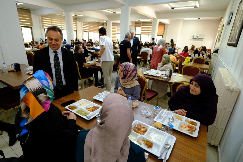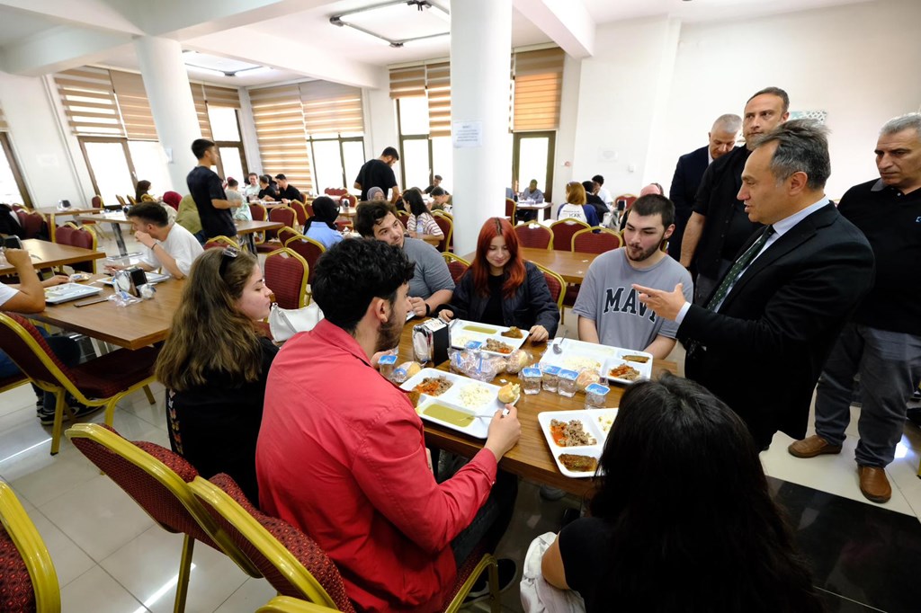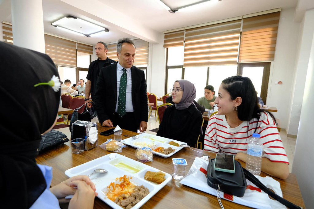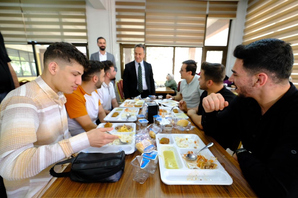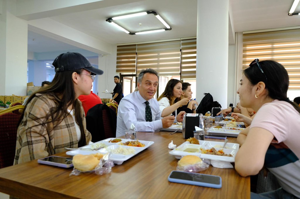 Rektörümüz Prof. Dr. Fatih YILMAZ, yemekhaneyi ziyaret ederek öğrencilerle sohbet etti. Mezuniyet haftası dolayısıyla Rektörümüz öğrencileri tebrik ederek başarılarının devamını diledi. Öğrencilerimiz uygulamadan duydukları memnuniyeti Rektörümüze ilettiler.