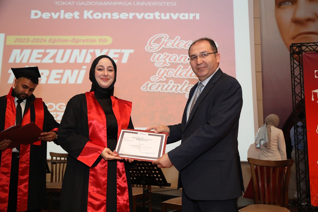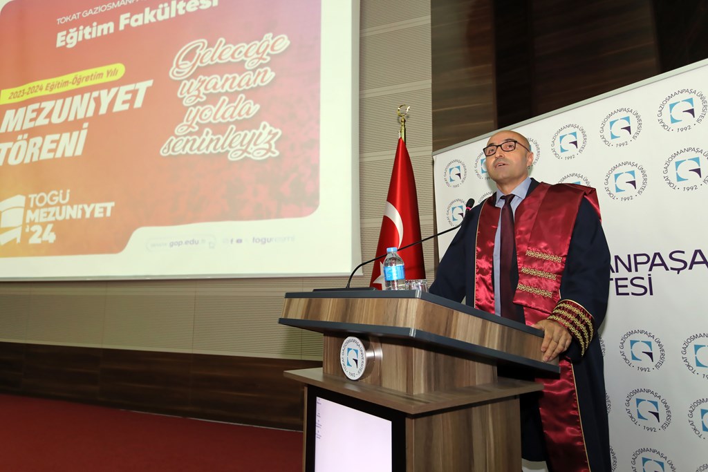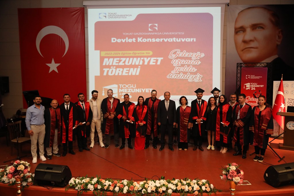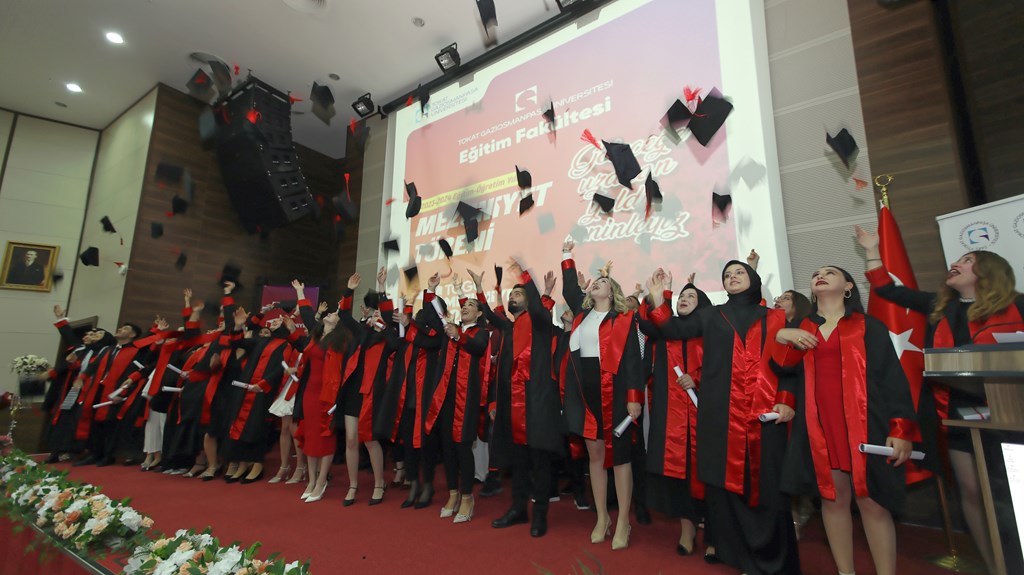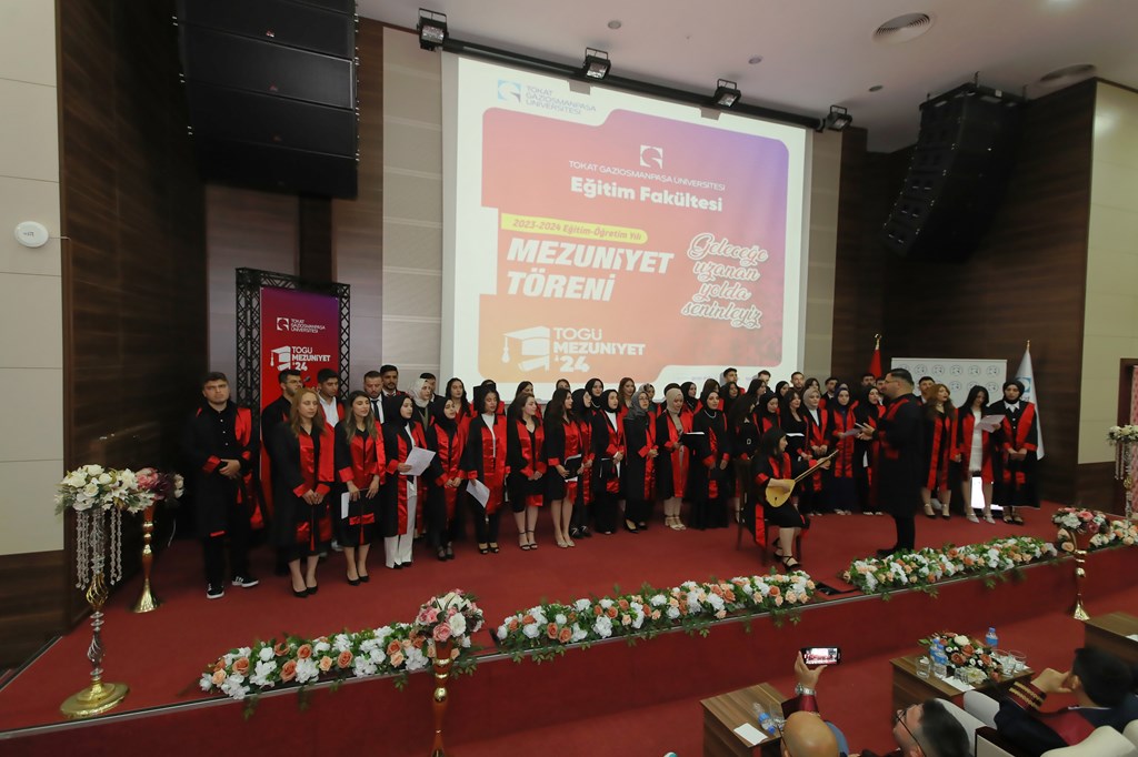 Üniversitemiz 2023-2024 eğitim öğretim yılı mezuniyet törenlerinin ikinci gününde Eğitim Fakültesi, Tokat Sağlık Hizmetleri MYO, Devlet Konservatuvarı ve Sağlık Bilimleri Fakültesinin mezuniyet törenleri gerçekleştirildi. Eğitim Fakültesi mezuniyet törenine Rektörümüz Prof. Dr. Fatih YILMAZ, akademik ve idari personelimiz ile öğrenci ve aileleri katıldı.