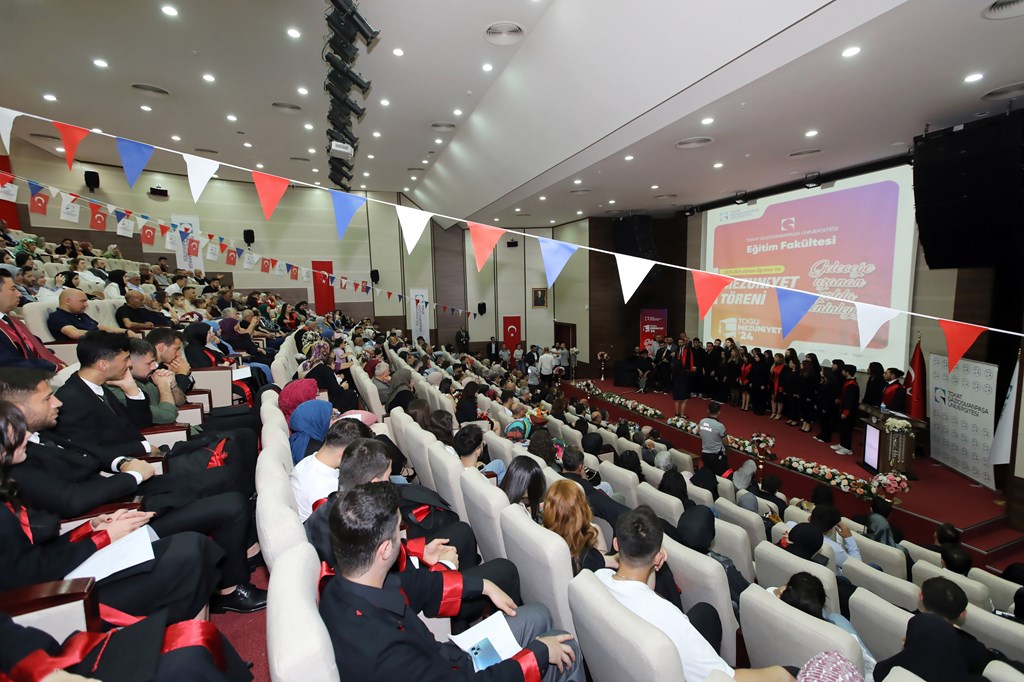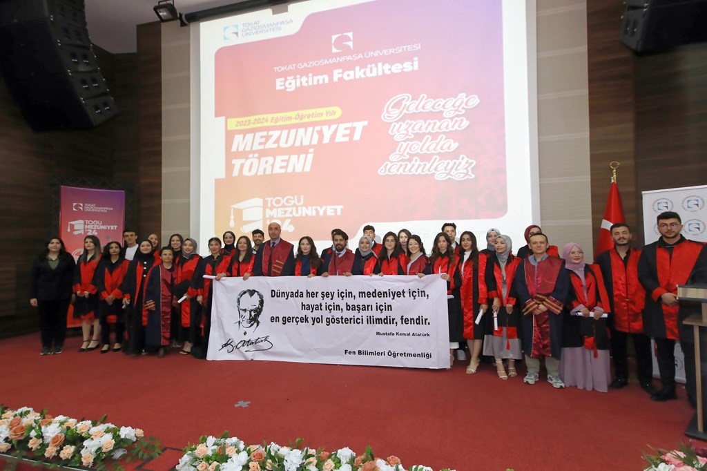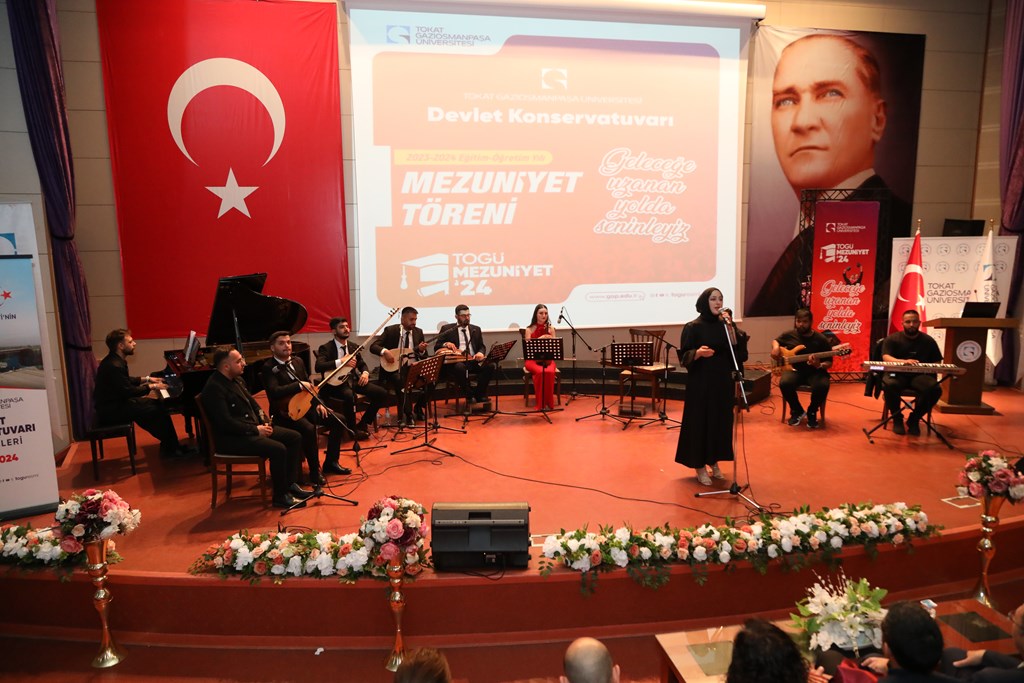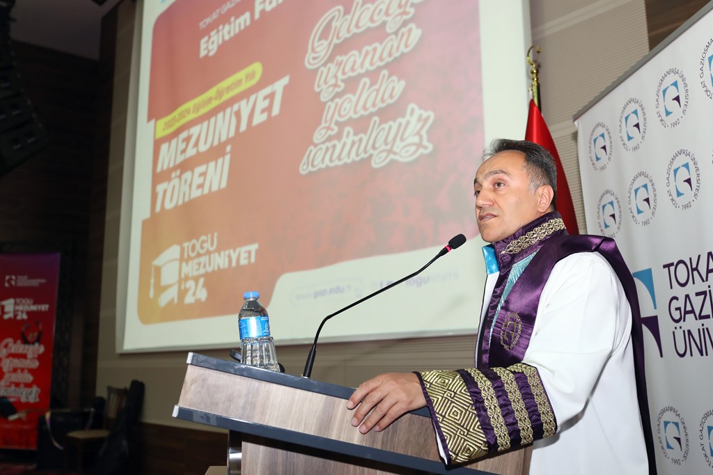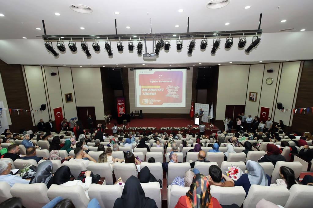 Üniversitemiz 2023-2024 eğitim öğretim yılı mezuniyet törenlerinin ikinci gününde Eğitim Fakültesi, Tokat Sağlık Hizmetleri MYO, Devlet Konservatuvarı ve Sağlık Bilimleri Fakültesinin mezuniyet törenleri gerçekleştirildi. Eğitim Fakültesi mezuniyet törenine Rektörümüz Prof. Dr. Fatih YILMAZ, akademik ve idari personelimiz ile öğrenci ve aileleri katıldı.