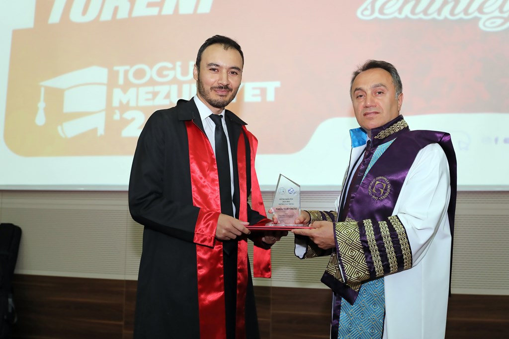Eğitim Fakültesi Birincisi müzik öğretmenliği bölümünden Mustafa Gökhan BEKEN, edinmiş olduğu bilgi ve birikimi pekiştirerek sorumluluklarının bilincinde bir birey olarak topluma katkıda bulunmaya hazır olduğunu ifade etti. Akademisyenlere, arkadaşlarına ve ailesine teşekkürlerini iletti.