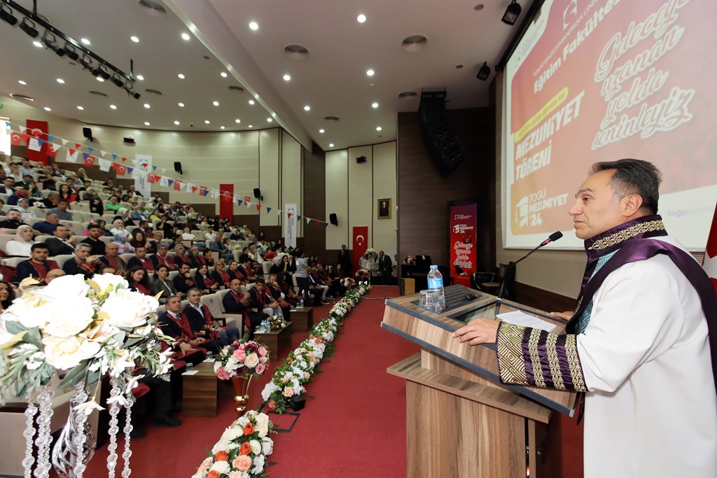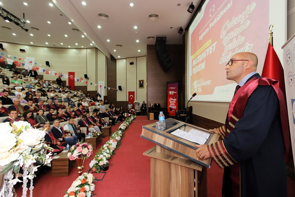 Eğitim Fakültesi Dekanı Prof. Dr. Erdal ŞENOCAK yapmış olduğu konuşmada, Üniversitemizin 25’inci yılını kutladıklarını ifade etti. ŞENOCAK, ailelere, evlatlarını bugünlere getirdikleri için akademisyenlere ise eğitim öğretim faaliyetlerindeki katılarından dolayı teşekkür etti. Öğrencilere seslenen Dekanımız, öğrencilerin yeni bir kariyer kapısında olduklarını ifade ederek aldıkları eğitim ve sorumluluklarla geleceği mezun öğrencilerin şekillendireceğini söyledi.