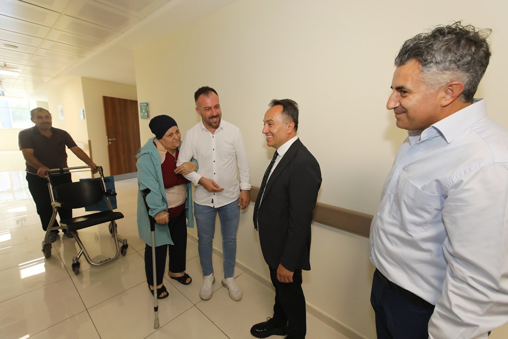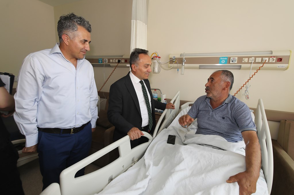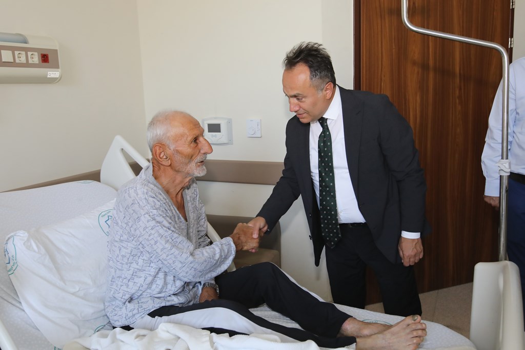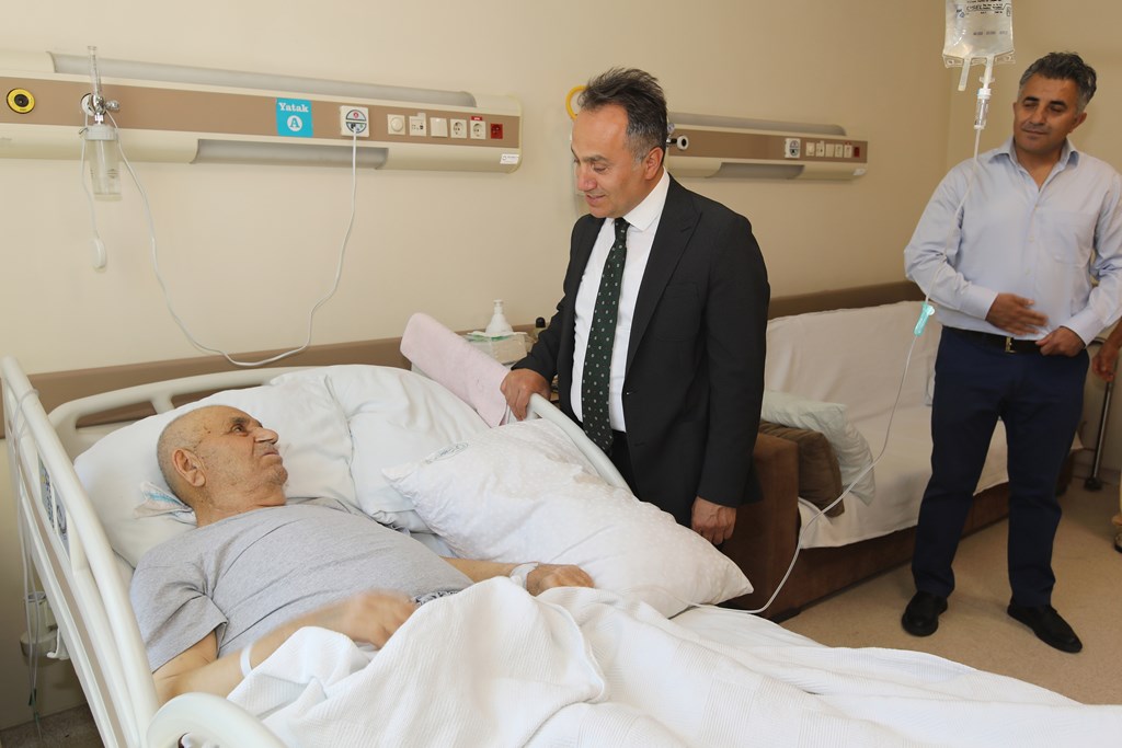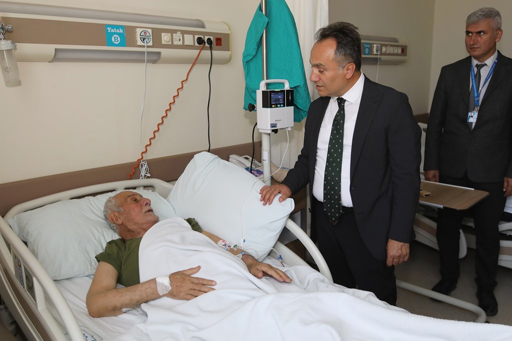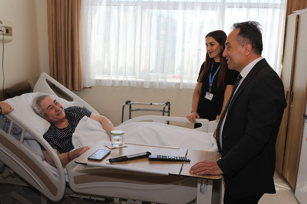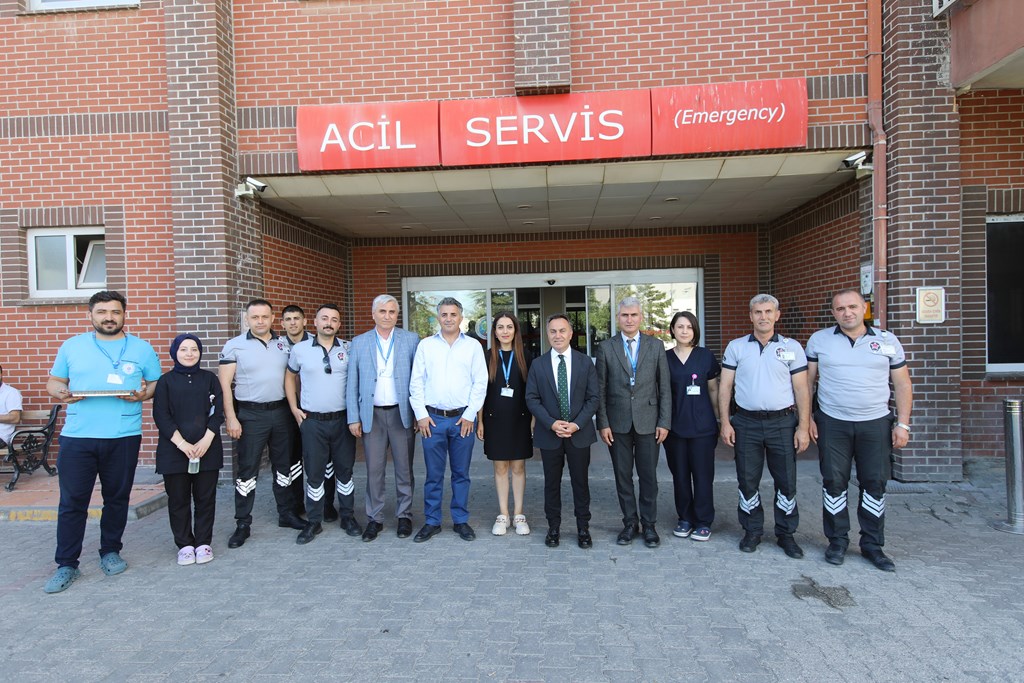Rektörümüz Prof. Dr. Fatih YILMAZ, Hastanemiz Başhekim Yardımcısı Dr. Öğr. Üyesi Kenan YALÇIN, Hastanemiz Baş Müdürü Seyfullah ALPAY, Hemşirelik Hizmetleri Koordinatör Yardımcısı Serpil AZNİK Üniversite Hastanemizde Kurban Bayramının ilk gününde hasta, hasta yakınları ve personelimizle bayramlaştı. Rektör YILMAZ hastalara ve hasta yakınlarına şifa dileklerinde bulunarak Kurban Bayramı'nı kutlarken, hasta ve yakınlarından hastanemizdeki hizmetlerden ne kadar memnun olduklarını, taleplerinin neler olduğunu dinledi. Hasta yakınları verilen hizmetten son derece memnun olduklarını belirterek başta Rektörümüz olmak üzere tüm hastane çalışanlarına teşekkür ettiler. Rektörümüz de hasta ve hasta yakınlarına geçmiş olsun dileklerinde bulunarak daha iyi hizmet vermek için çalışmalara devam edeceklerini ifade etti. Rektörümüz Prof. Dr. Fatih YILMAZ Kurban Bayramında görev yapan personelimize de teşekkür ederek çalışmalarında kolaylıklar diledi.