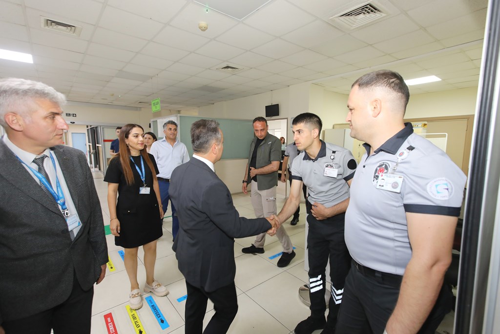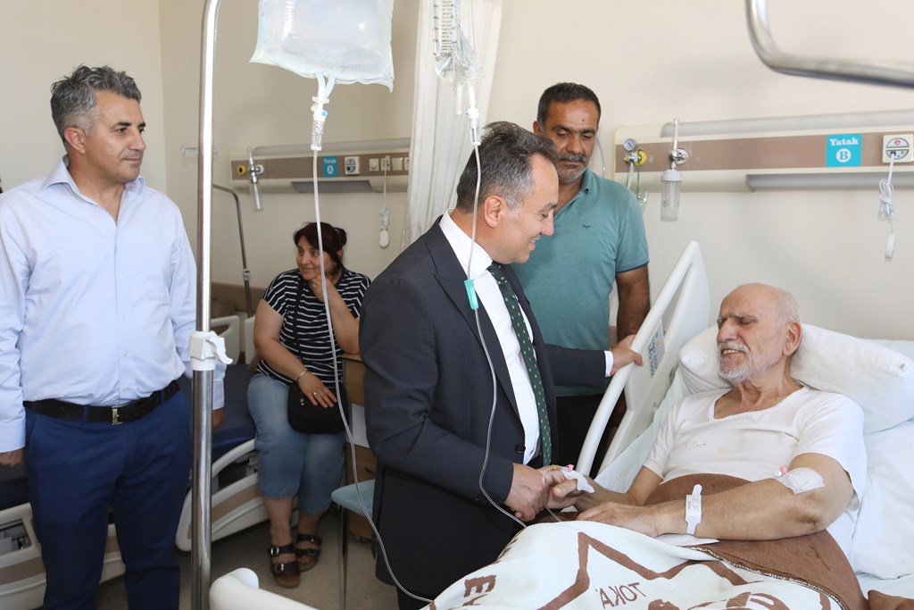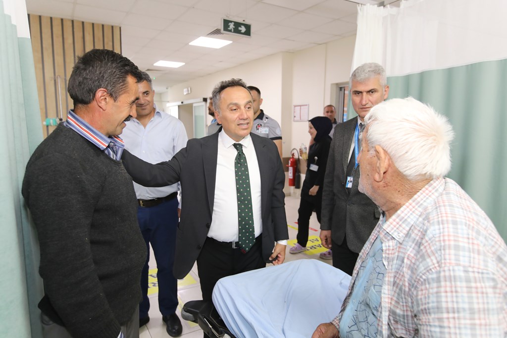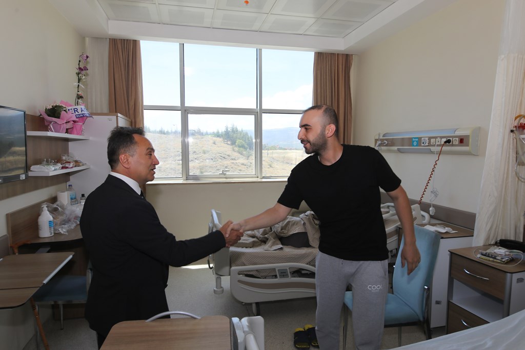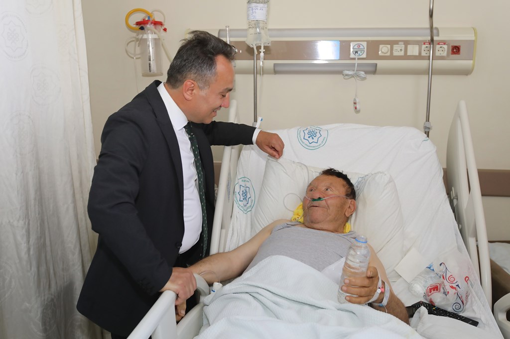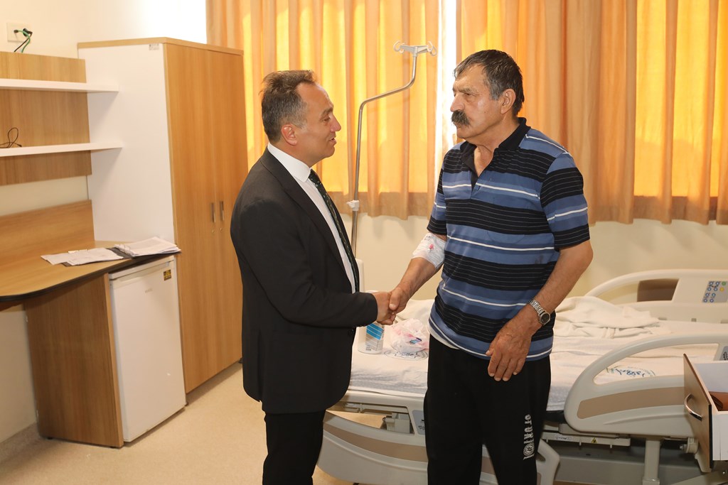 Rektörümüz Prof. Dr. Fatih YILMAZ, Hastanemiz Başhekim Yardımcısı Dr. Öğr. Üyesi Kenan YALÇIN, Hastanemiz Baş Müdürü Seyfullah ALPAY, Hemşirelik Hizmetleri Koordinatör Yardımcısı Serpil AZNİK Üniversite Hastanemizde Kurban Bayramının ilk gününde hasta, hasta yakınları ve personelimizle bayramlaştı. Rektör YILMAZ hastalara ve hasta yakınlarına şifa dileklerinde bulunarak Kurban Bayramı'nı kutlarken, hasta ve yakınlarından hastanemizdeki hizmetlerden ne kadar memnun olduklarını, taleplerinin neler olduğunu dinledi. Hasta yakınları verilen hizmetten son derece memnun olduklarını belirterek başta Rektörümüz olmak üzere tüm hastane çalışanlarına teşekkür ettiler. Rektörümüz de hasta ve hasta yakınlarına geçmiş olsun dileklerinde bulunarak daha iyi hizmet vermek için çalışmalara devam edeceklerini ifade etti. Rektörümüz Prof. Dr. Fatih YILMAZ Kurban Bayramında görev yapan personelimize de teşekkür ederek çalışmalarında kolaylıklar diledi.