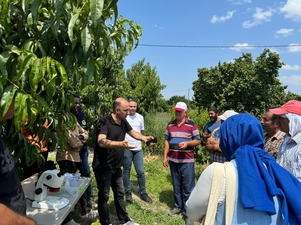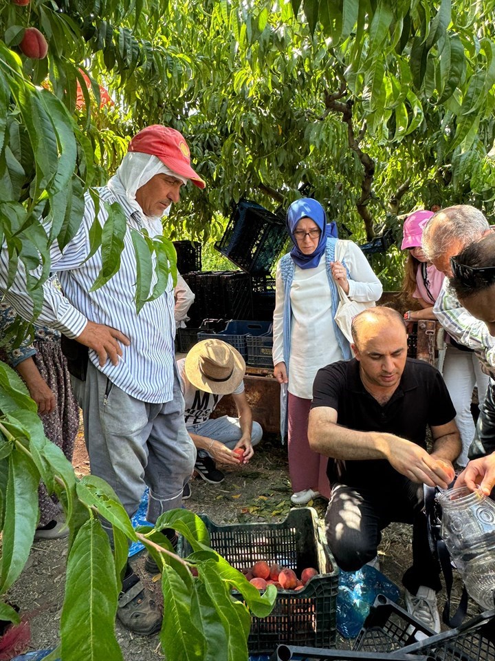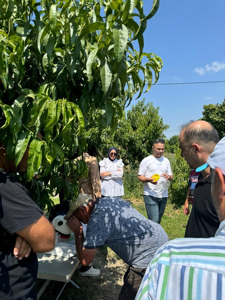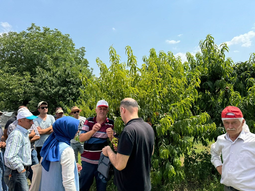 Üniversitemiz Ziraat Fakültesi tarafından şeftali üretim alanlarındaki bitki koruma sorunlarının yerinde tespiti ve yetiştiricilik problemlerine yönelik olarak çiftçi ziyaretleri gerçekleştirildi. Tokat ilinde yoğun olarak şeftali üretimi yapılan Akyamaç köyünde gerçekleştirilen arazi çalışmalarına Ziraat Fakültesi Öğretim Üyelerinden Doç. Dr. Turgut ATAY, Doç. Dr. Ayşe YEŞİLAYER, Dr. Öğr. Üyesi Sabriye BELGÜZAR, Dr. Öğr. Üyesi Hakan KARADAĞ ve Orta Karadeniz Geçiş Kuşağı Tarımsal Araştırma Enstitüsü’nden Ziraat Yüksek Mühendisi H. Bilal TAŞLIOĞLU ile stajyer öğrencilerimiz katıldı. Gerçekleşen programda özellikle geçen yıl şeftali alanlarında zarara neden olan sirke sineklerinin zararı ve alınacak tedbirler hakkında üreticiler bilgilendirildi. Sirke Sineğinin tespiti, mücadelesi ve popülasyon takibinin yapılabilmesi için sirke tuzaklarının önemine değinildi, nasıl hazırlanacağı hakkında bilgiler aktarıldı. Eğitim çalışmasının devamında şeftalide problem oluşturan diğer bitki koruma problemleri ve yetiştiricilik sorunları hakkında stajyer öğrencilere ve çiftçilere bilgiler verildi. Arazi gözlemleri esnasında diğer bazı sebze ve meyvelerdeki sorunlar da incelenerek üretici şikayetleri dinlendi ve alınacak önlemler hakkında çiftçilere bilgilendirildi.