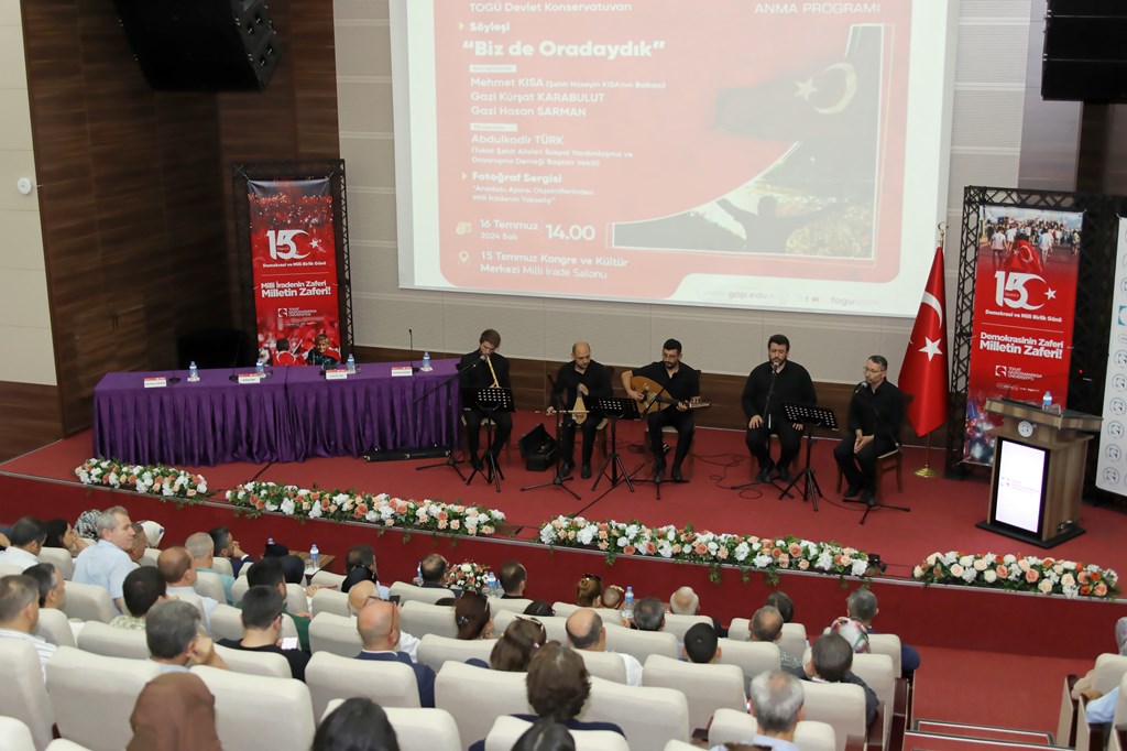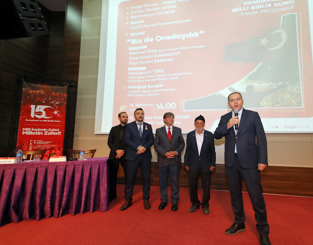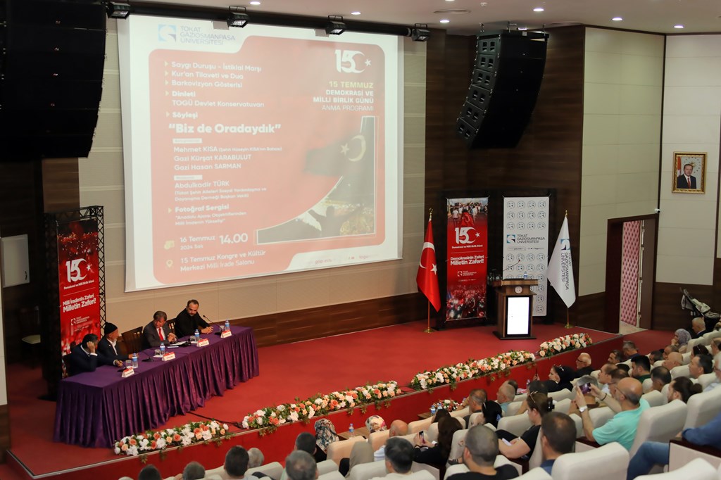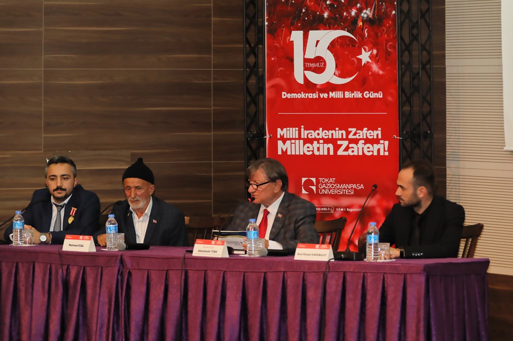 Tokat Şehit Aileleri Sosyal Yardımlaşma ve Dayanışma Derneği Başkan Vekili Abdulkadir TÜRK’ün moderatörlüğünde gerçekleşen söyleşide 15 Temmuz Şehidimiz Hüseyin KISA’nın babası Mehmet KISA, Gazi Kürşat KARABULUT ve Gazi Hasan SARMAN panelist olarak yer aldı. Başkan Vekili Abdulkadir TÜRK, 15 Temmuz Demokrasi ve Millî Birlik Günü’nün anlam ve önemine dair açıklamalarda bulundu. Türk milletinin korkusuzca ve kahramanca ihanetlere karşı duracağını ifade etti. 15 Temmuz Şehidimiz Hüseyin KISA’nın babası Mehmet KISA 15 Temmuz gecesi, oğlunun şehit olma sürecinde yaşadıklarını anlattı. Gazi Kürşat KARABULUT iş için İstanbul’da bulunduğunu belirterek 15 Temmuz gecesi yaralandığını ve tedavi sürecini aktardı. Gazi Hasan SARMAN, Bilgisayar Mühendisliği stajı için İstanbul’a iki gün önce geldiğini, darbe girişiminden haberdar olduğu andan itibaren darbeye karşı durmak için sokağa çıktığını ve yaralandığını belirtti.