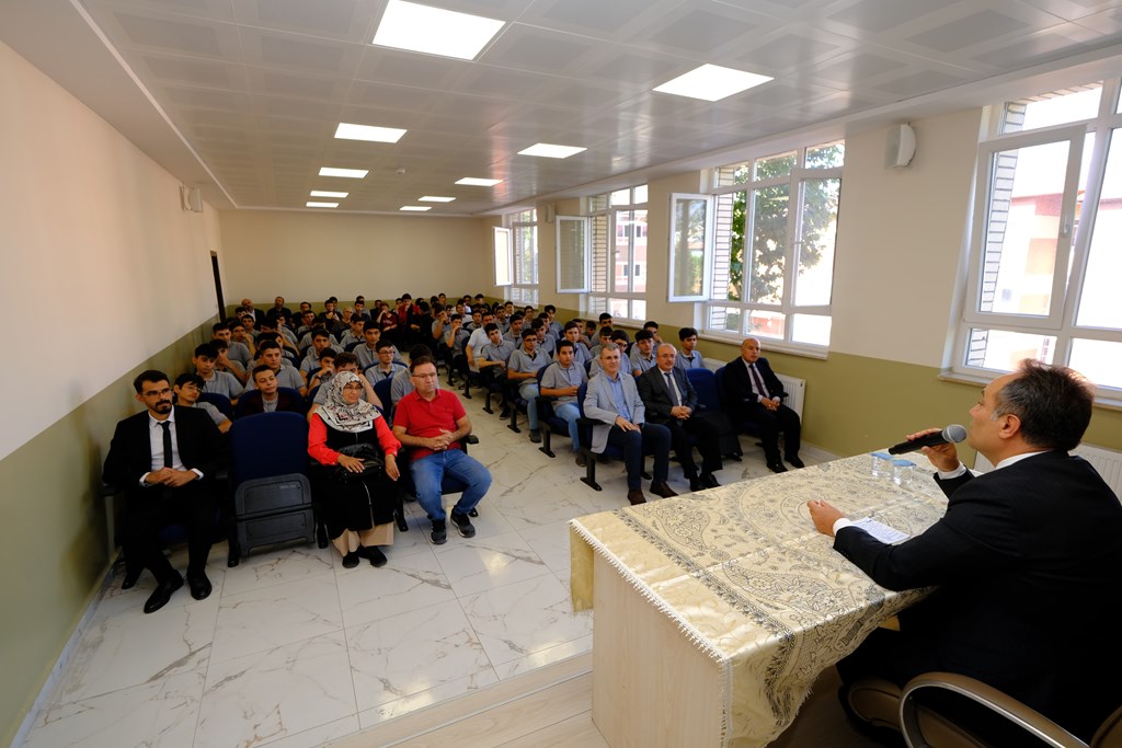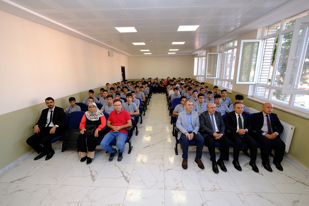 Rektörümüz Prof. Dr. Fatih Yılmaz, ilk ders uygulamasının Üniversitemiz tarafından başlatıldığını belirterek gençlerle bir araya gelmekten duyduğu memnuniyeti ifade etti. Kendi öğrencilik hayatından bahseden Rektörümüz başarıya giden yolda çok çalışmanın önemini vurguladı. Ülkemizin kalkınmasında gençlere oldukça çok iş düştüğünü belirten Rektörümüz, akademik becerilerin yanı sıra sosyal aktivitelere de katılımın önemli olduğunu vurguladı. Tokat’ta kurum ve kuruluşlar tarafından birçok kurs verildiğini aktaran Rektörümüz bu fırsattan gençlerin yararlanmasında yarar var dedi. Eğitim hayatının yanı sıra proje üretme ve dil becerilerini geliştirme noktasında da gençlerin girişimlerde bulunmasını belirten Rektörümüz geleceğe güvenle bakmalarını ve karamsar olmamalarını tavsiye etti.