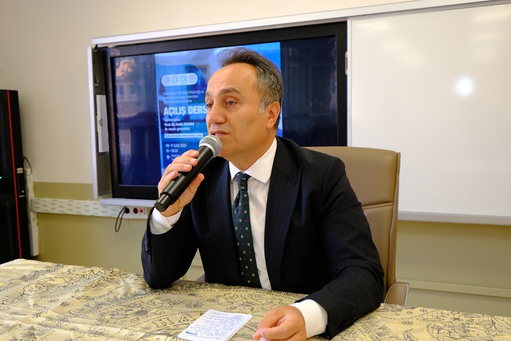 Rektörümüz Prof. Dr. Fatih Yılmaz, Üniversitemiz ve yapılan iş birlikleri hakkında bilgiler verdi. Yeni eğitim öğretim yılının başarılarla dolu olması dileğinde bulunarak açılış dersini sonlandırdı. Günün anlam ve önemi için Rektörümüze hediye takdim edildi.