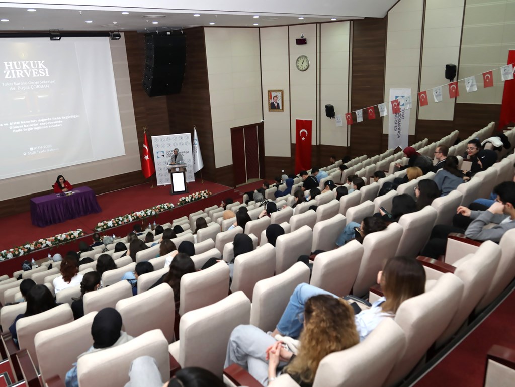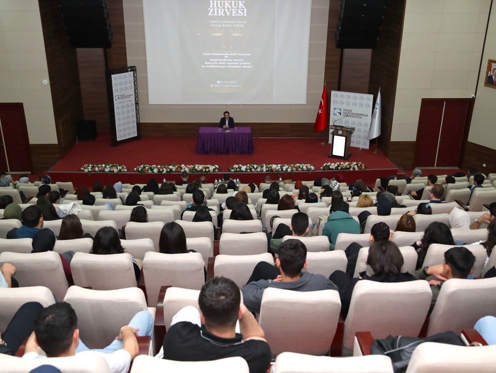 Programda Tokat Cumhuriyet Savcısı Yunus Emre Saraç, Tokat 3. Asliye Ceza Mahkemesi Hâkimi Abdullah Selim Dinç ve Tokat Barosu Genel Sekreteri Av. Büşra Çorman konuşmacı olarak yer aldı. Etkinlikte konuşmacılar, hukuk mesleğinin farklı alanlarına dair bilgi ve deneyimlerini paylaşarak, öğrencilere kariyer planlamaları konusunda rehberlik etti.