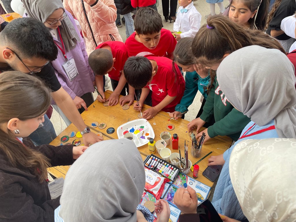 Projenin birinci aşamasında Ali Tepe Topçubağı İlkokulu'nda gerçekleştirilen renklendirme çalışmalarının ardından, ikinci aşamada 23 Nisan Ulusal Egemenlik ve Çocuk Bayramı şenliği için Kulüp Danışmanı Dr. Öğretim Üyesi İrem Demirbaş Susoy ve kulüp üyeleri Çat Şehit Adem Gövce İlkokulunda çocuklarla buluştu.