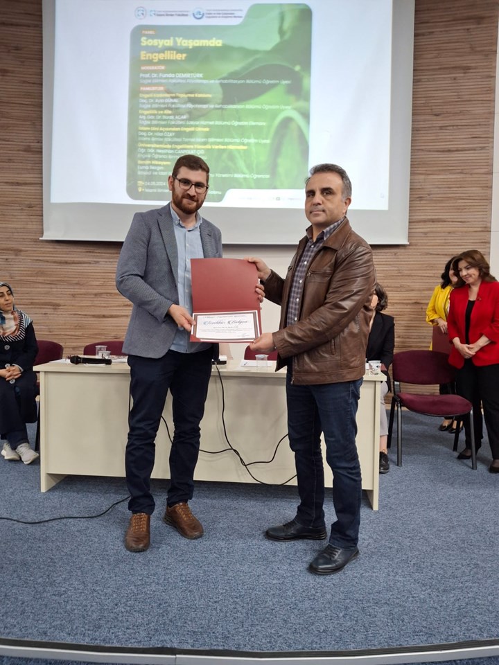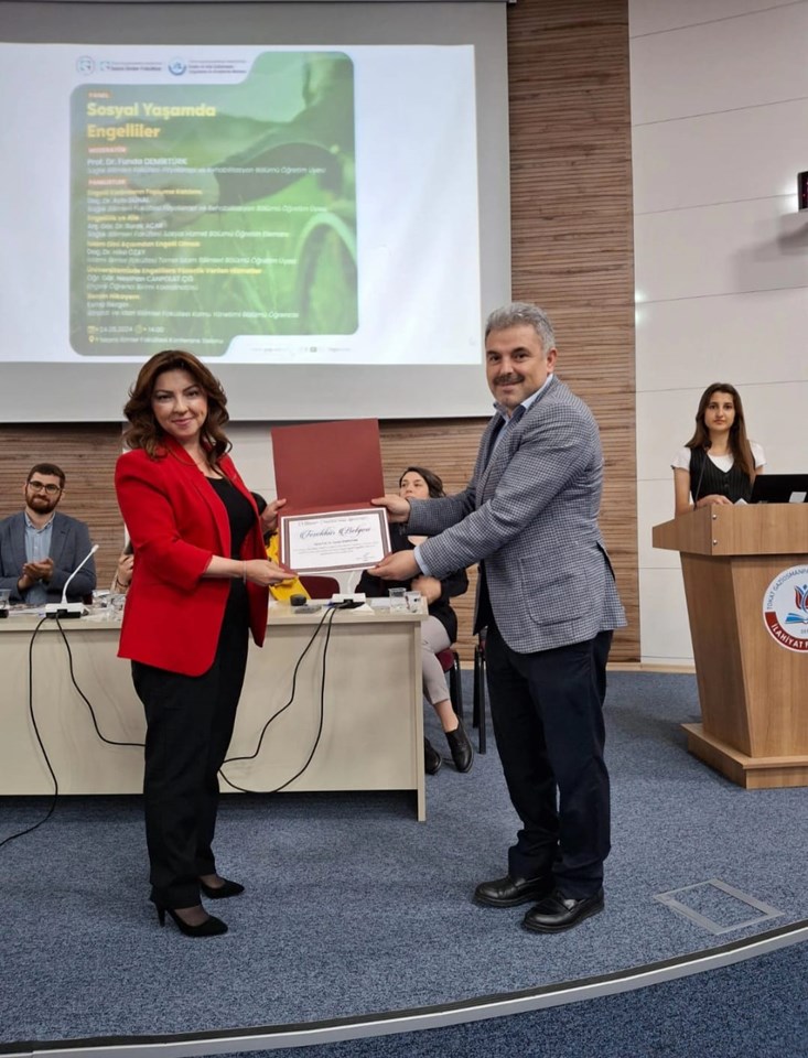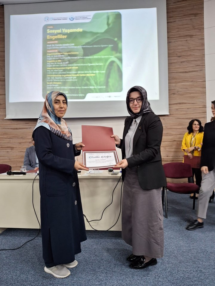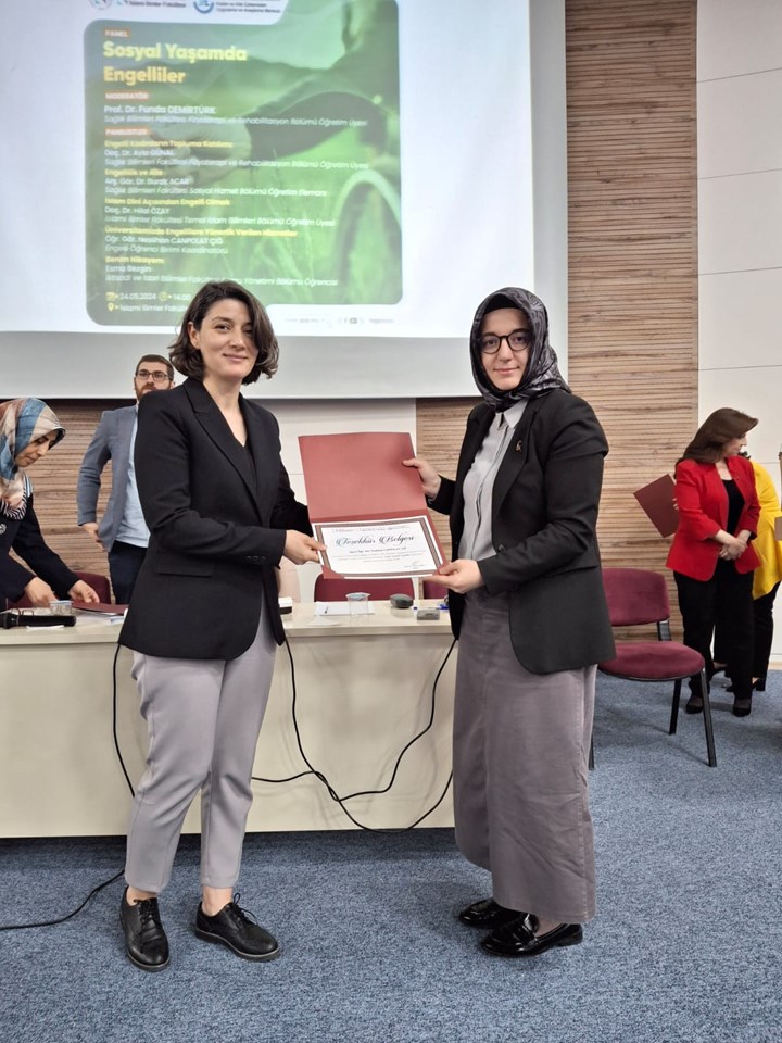 Üniversitemiz İslami İlimler Fakültesi ve Kadın ve Aile Çalışmaları Uygulama ve Araştırma Merkezi iş birliği ile "Sosyal Yaşamda Engelliler" isimli panel gerçekleştirildi. İslami İlimler Fakültesi Konferans Salonunda gerçekleşen panele İslami İlimler Fakültesi Dekanı Prof. Dr. Ahmet İNANIR, Erbaa Sosyal ve Beşeri Bilimler Fakültesi Dekanı Prof. Dr. Mehmet DEMİRTAŞ, Kadın ve Aile Çalışmaları Uygulama ve Araştırma Merkezi Müdürü Dr. Öğr. Üyesi Zeynep ACUNGİL, üniversitemiz akademik ve idari personeli ile öğrencilerimiz katıldı. Panelin moderatörlüğünü Prof. Dr. Funda DEMİRTÜRK yaptı, Doç. Dr. Ayla GÜNAL, Doç. Dr. Hilal ÖZAY, Arş. Gör. Dr. Burak ACAR, Ögr. Gör. Neslihan CANPOLAT ÇIĞ ve öğrencimiz Esma BEZGİN panelist olarak yer aldırlar. Program panelistlere teşekkür belgelerinin takdimi ile son buldu.