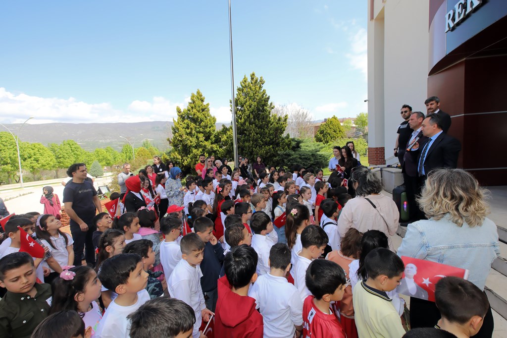 Ziyaret sırasında yaptığı konuşmada, Gazi Mustafa Kemal Atatürk’ün çocuklara verdiği öneme dikkat çeken Rektörümüz, “Atatürk, çocuklara ve gençlere büyük değer veren bir liderdi. 23 Nisan Ulusal Egemenlik ve Çocuk Bayramı, onun çocuklara armağan ettiği çok özel bir gündür. Dünyada çocuklara ithaf edilen ilk ve tek bayram olması bakımından da ayrı bir öneme sahiptir. Sizler, bizlerin geleceğisiniz. Bayramınız kutlu olsun” ifadelerini kullandı.