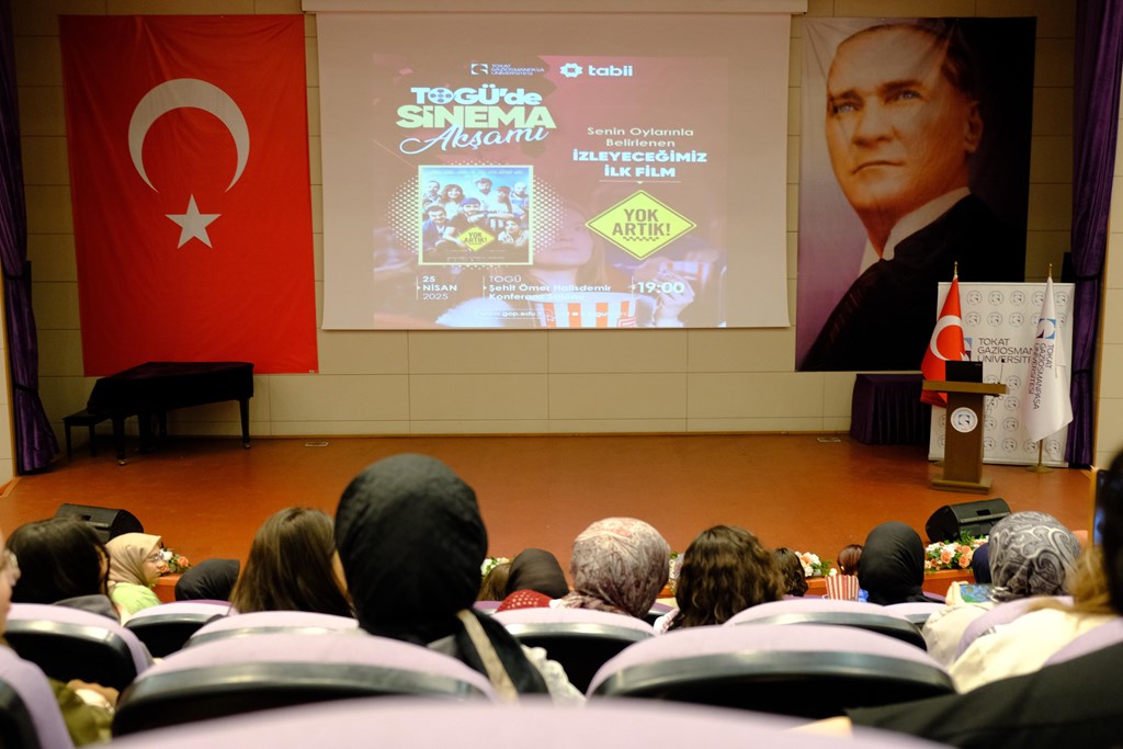 Üniversitemiz tarafından öğrencilerin sosyal ve kültürel gelişimlerine katkı sunmak amacıyla başlatılan “TOGÜ’de Sinema Günleri” etkinliği, yoğun ilgiyle başladı. Üniversitemiz Kurumsal İletişim Koordinatörlüğü tarafından organize edilen etkinlik dizisinin ilk gösterimi, Şehit Ömer Halisdemir Konferans Salonu’nda gerçekleştirildi.