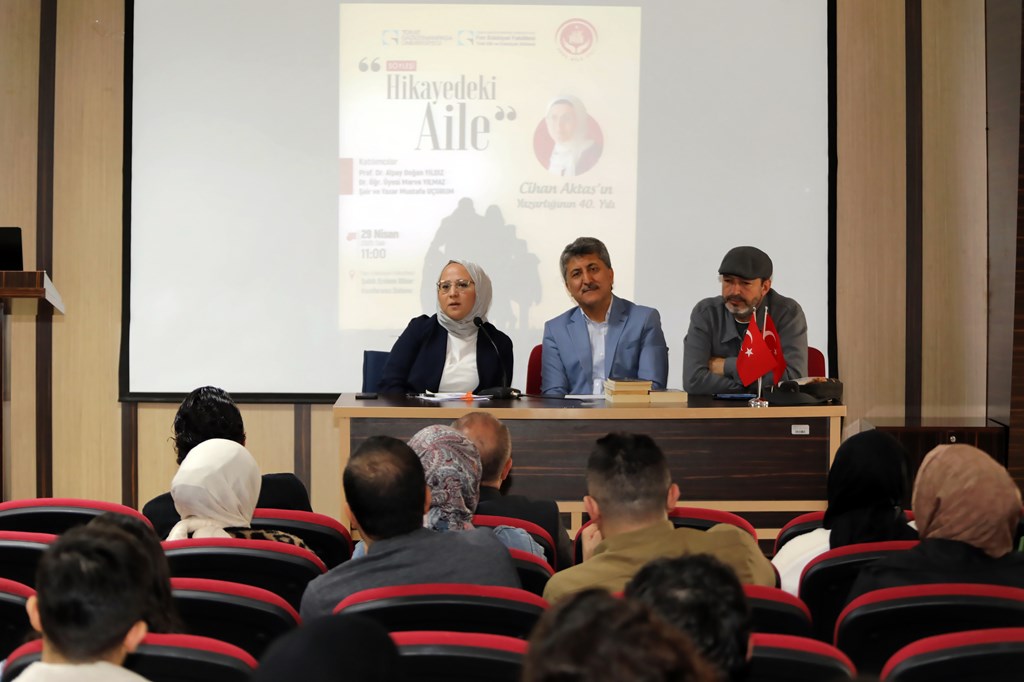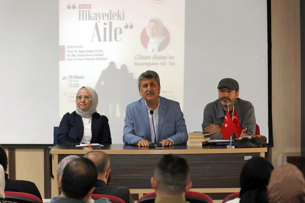 Etkinlikte, edebiyatımızın önemli isimlerinden Cihan Aktaş’ın yazarlığının 40. yılı da onurlandırıldı. Aile kavramının edebi metinlerdeki yeri üzerine yapılan söyleşide, Prof. Dr. Alpay Doğan Yıldız, Dr. Öğr. Üyesi Merve Yılmaz ve Şair-Yazar Mustafa Uçurum katılımcılarla düşüncelerini paylaştı. Söyleşi boyunca aile yapısının edebiyatımıza nasıl yansıdığına dair dikkat çekici analizler sunuldu.