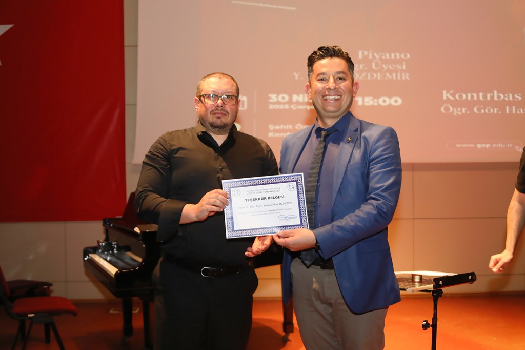 Aynı gün saat 15.00’te ise Kontrbas Resitali, Şehit Ömer Halisdemir Konferans Salonu’nda müzikseverlerle buluştu. Konserde kontrbas sanatçısı Öğr. Gör. Hasan Mert ile piyanist Dr. Öğr. Üyesi Y. Utkan Özdemir sahne aldı. İkilinin uyum içinde sergilediği eserler, klasik müzik tutkunlarından büyük beğeni topladı.