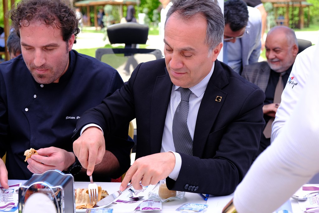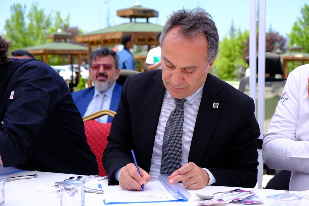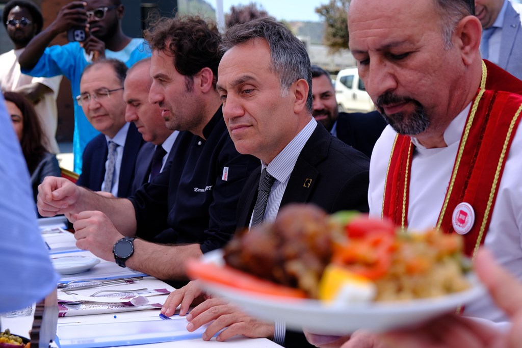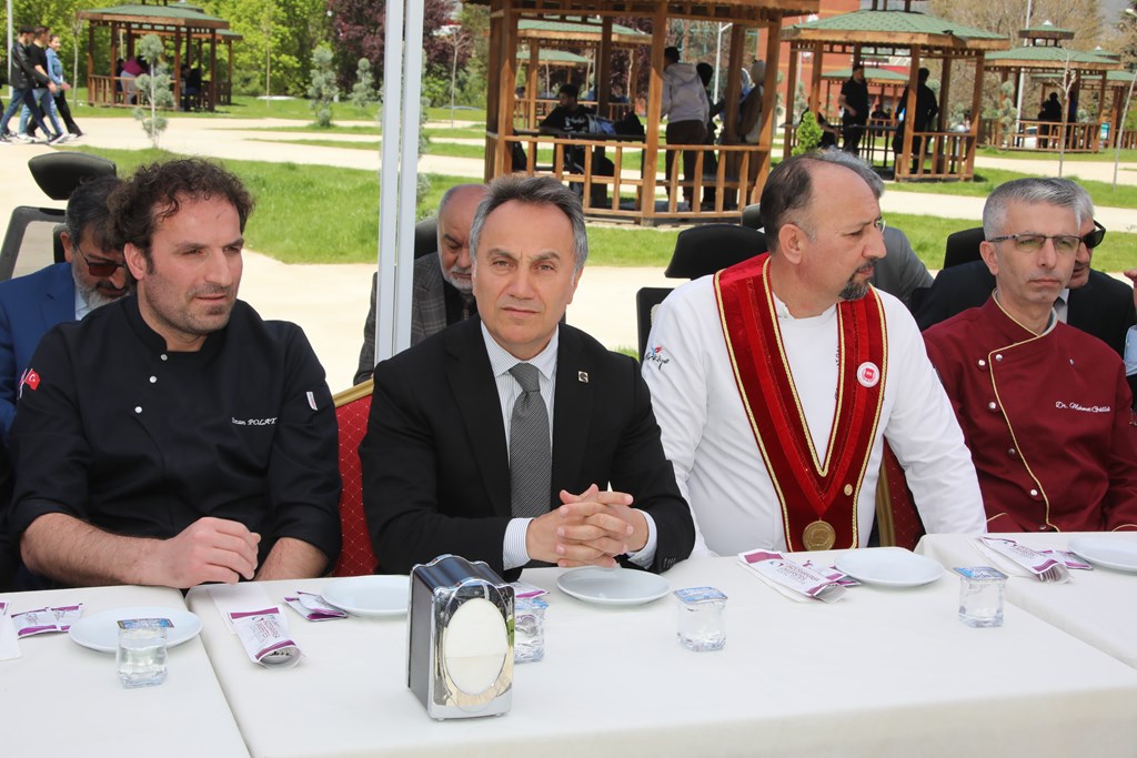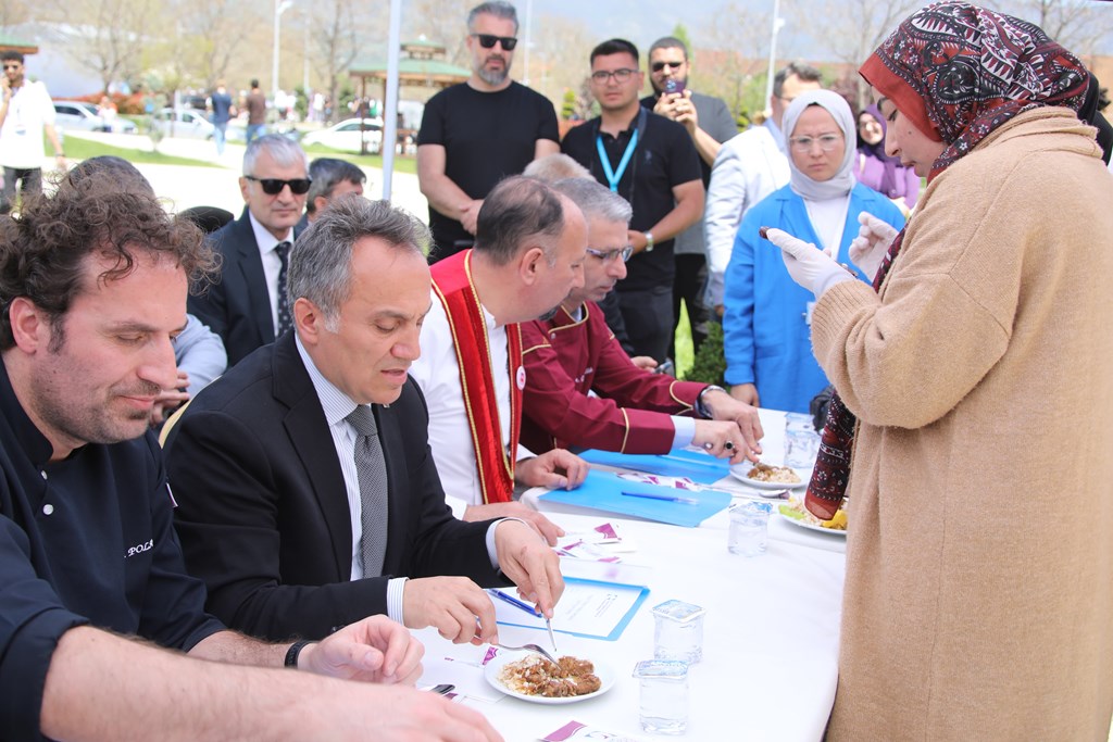 TÖMER binası önünde gerçekleşen etkinliğe üniversite yönetimi, akademisyenler, öğrenciler ve çok sayıda davetli katıldı. Yarışmanın jürisinde yer alan Rektörümüz Prof. Dr. Fatih Yılmaz, öğrencilerin özverili hazırlıklarını ve birbirinden lezzetli yemeklerini yakından değerlendirdi.