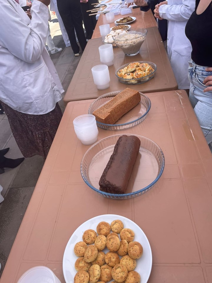 Beslenme ve Diyetetik Bölüm hocalarının koordinatörlüğünde kulüp üyesi Beslenme ve Diyetetik Bölümü öğrencileri tarafından özenle hazırlanan afiş, broşür ve pankartlar etkinlik alanında sergilendi. Çölyak hastalığı hakkında bilgilendirici içerikler öğrencilerin ve akademik personelin ilgisini çekti. Etkinlikte ayrıca, glütensiz beslenmenin önemine dikkat çekmek amacıyla Beslenme İlkeleri Laboratuvarı’nda hazırlanan glütensiz özel ürünlerden kek, kurabiye, karabuğday salatası, kinoalı kısır gibi çeşitli tariflerden oluşan ikramlar katılımcıların tadımına sunuldu. Etkinlik sayesinde katılımcılar hem çölyak hastalığı hakkında bilgi edinme fırsatı buldu hem de glütensiz beslenme alternatiflerini tatma imkânı elde etti.